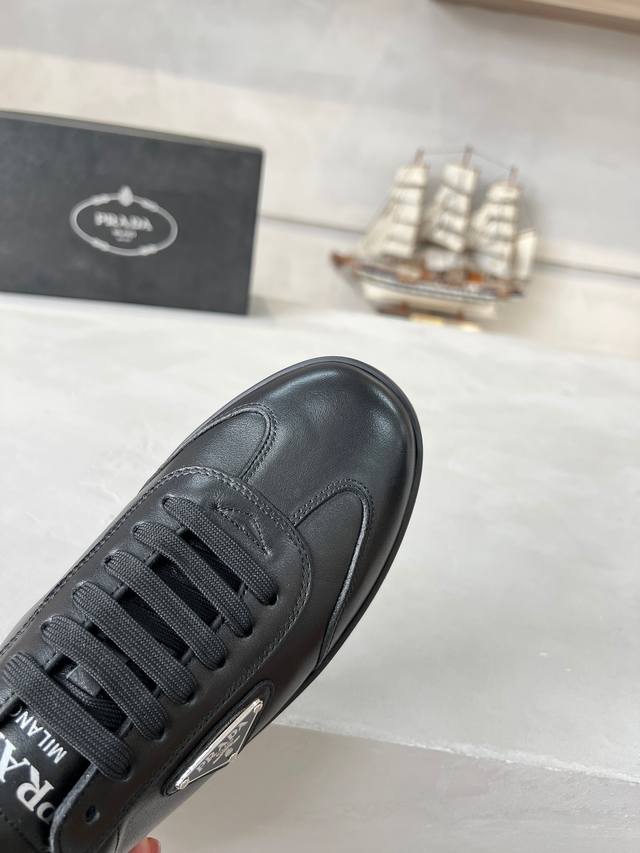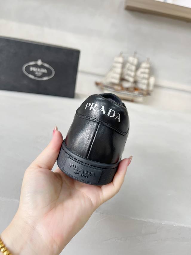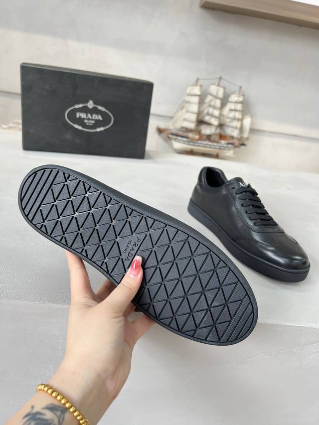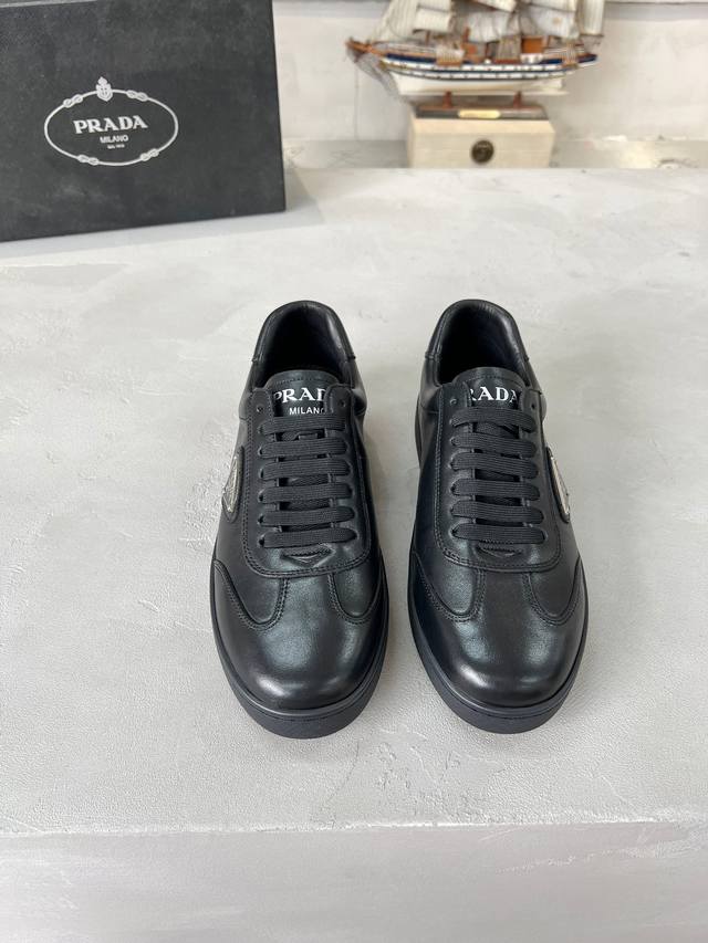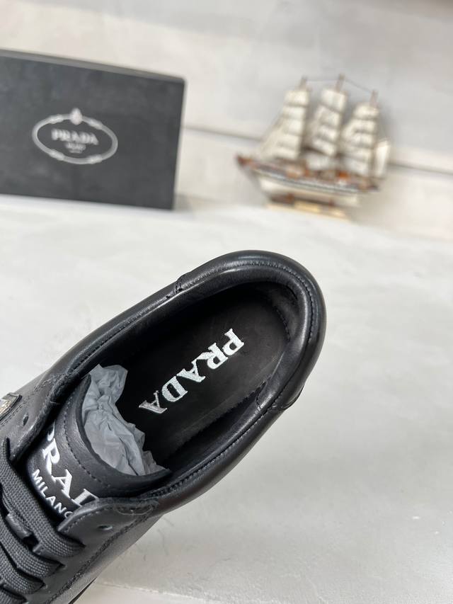 Factory Price: Prada men's shoes, best-selling item in boutiques, same as the official website, high-quality delivery. Material: Original cowhide leather. Lining: Cowhide insole + cowhide lining. Outsole: Original rubber sole. Sizes: 38-45. Size 45 is custom-made and non-refundable.