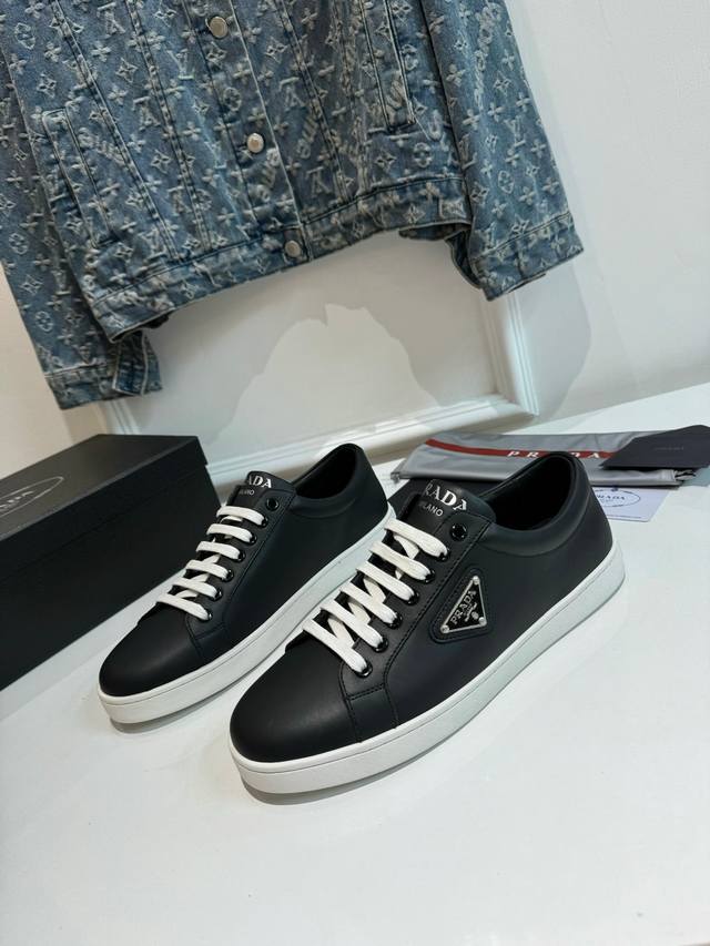 Factory Price: Prada men's shoes, best-selling item in boutiques, same as the official website, high-quality delivery. Material: Original cowhide leather. Lining: Cowhide insole + cowhide lining. Outsole: Original rubber sole. Sizes: 38-45. Size 45 is custom-made and non-refundable.