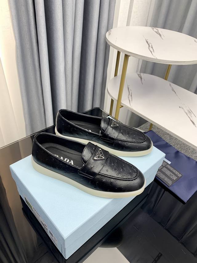 High-quality factory direct! Original product! Top-tier version Prada Ss Summer New Saint-Tropez Series Casual Shoes Classic Triangle Logo Unisex Loafers New Hot Item~