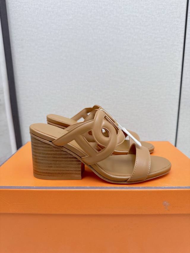 High-quality factory-made 2025 Hermes new mid-heel sandals, custom-made with hand-stitched craftsmanship and enamel finish. A fully-matched steel mold, perfectly replicating the authentic American logo and font. Exuding sophisticated charm and a luxurious, fashionable look. 8cm heel. Made with exclusive imported French goatskin, mixed goatskin lining, and authentic spliced genuine leather outsole. Includes artisan code. Handcrafted by a master pattern maker with impeccable stitching. High quality, look for exclusive authentic development, Italian custom last, classic handcrafted. Sizes: 35, 41, 40, 41. No returns or exchanges .