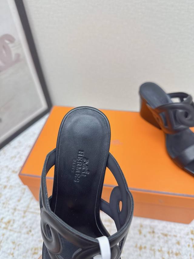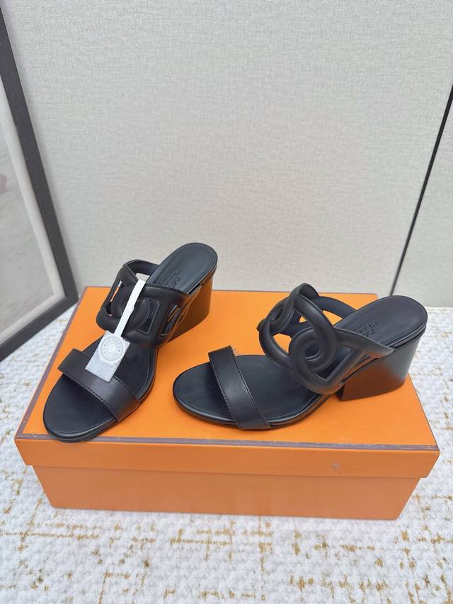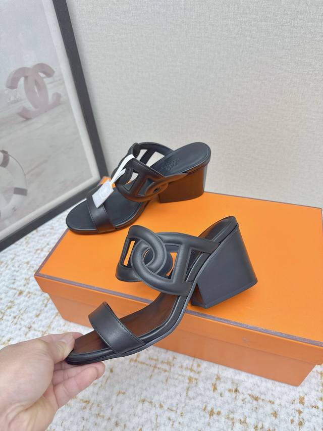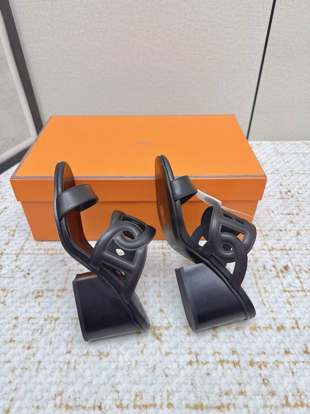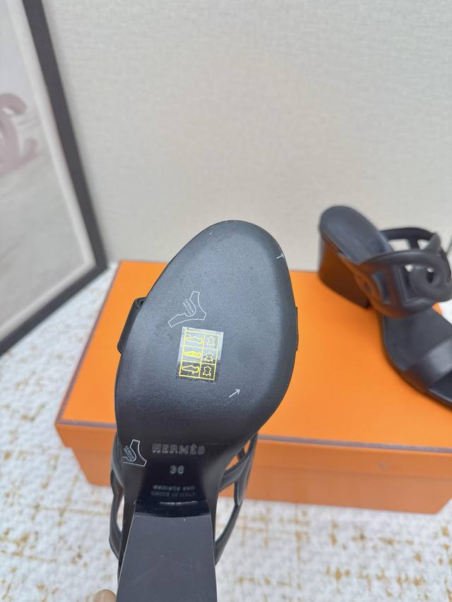 High-quality factory-made 2025 Hermes new mid-heel sandals, custom-made with hand-stitched craftsmanship and enamel finish. A fully-matched steel mold, perfectly replicating the authentic American logo and font. Exuding sophisticated elegance and luxurious style. 8cm heel. Made with exclusive imported French goatskin, mixed goatskin lining, and authentic spliced genuine leather outsole. Includes artisan code. Handcrafted by a master pattern maker, with impeccable stitching. High quality, look for exclusive authentic development, Italian custom last, classic handcrafted. Sizes: 35, 41, 40, 41. No returns or exchanges .