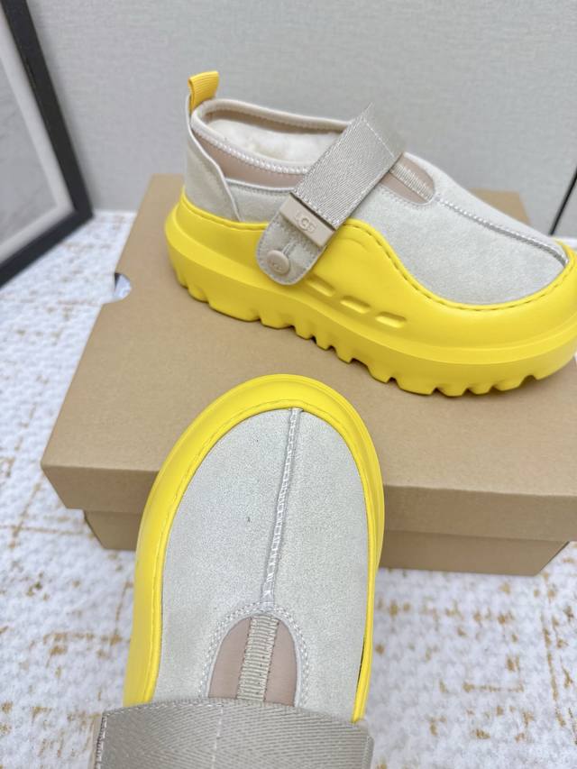 couple's Ugg new wool shoes are comfortable and snug, won't rub your feet at all, and won't tire your feet even after wearing them all day. Stylish design, they easily complement both casual and feminine looks, 100% versatile and sure to turn heads. Excellent quality and attention to detail, a must-buy. The upper features neoprene rubber for water resistance, suede for stability even in rainy weather, and ultra-warm wool. The