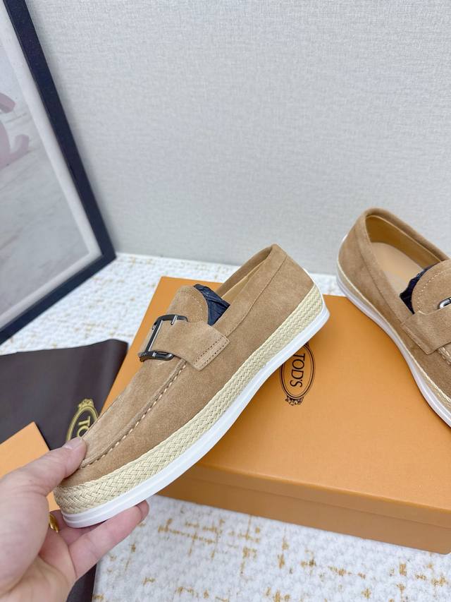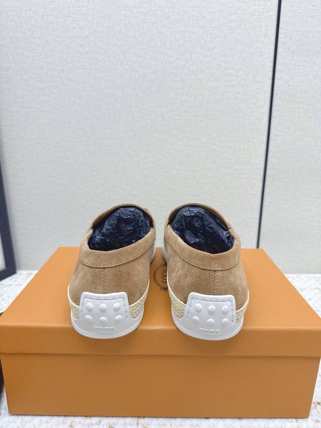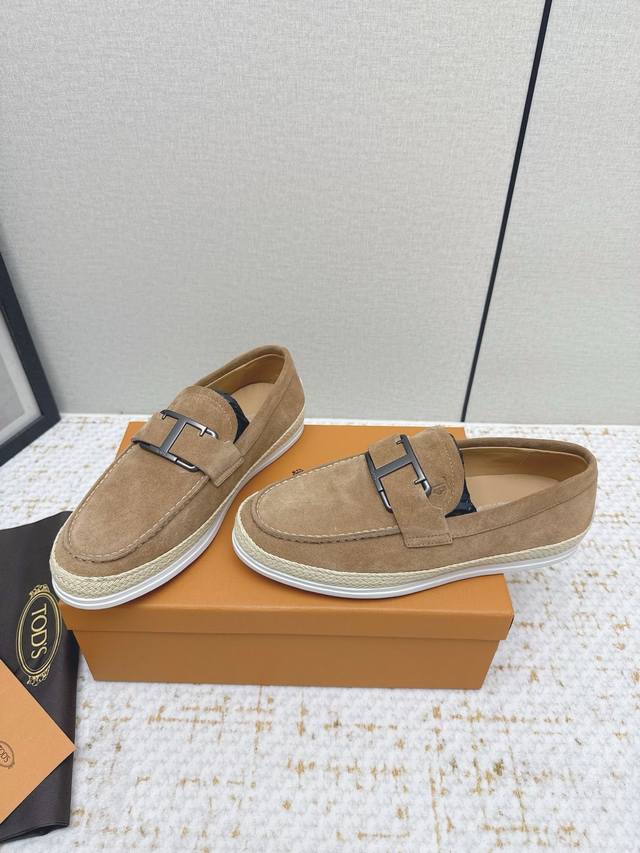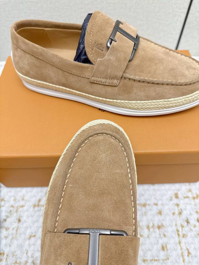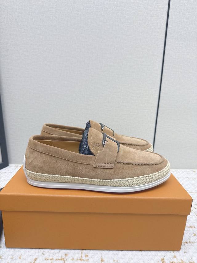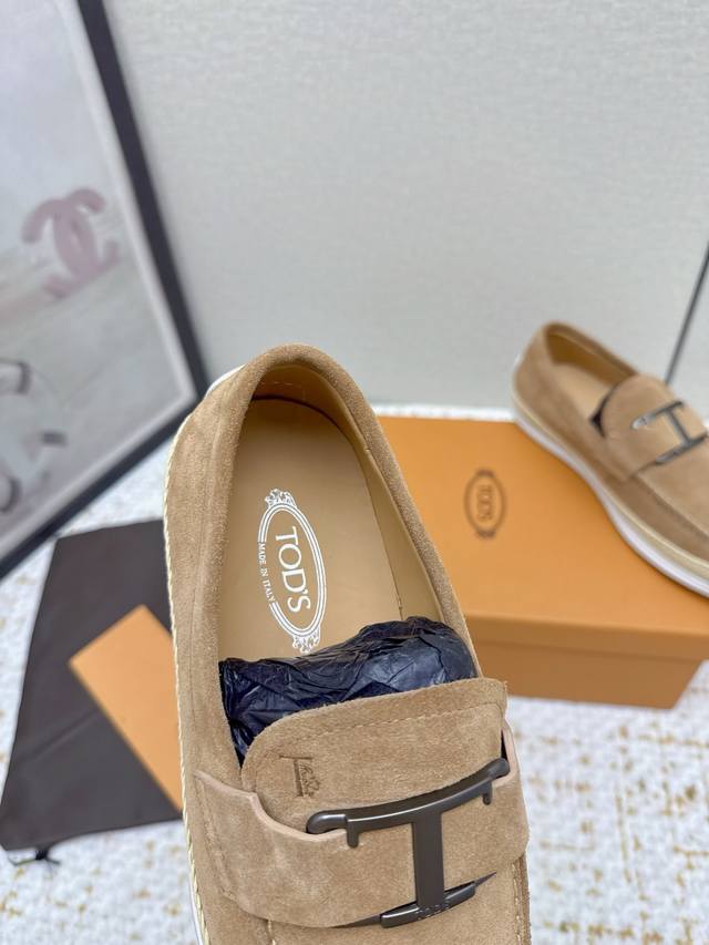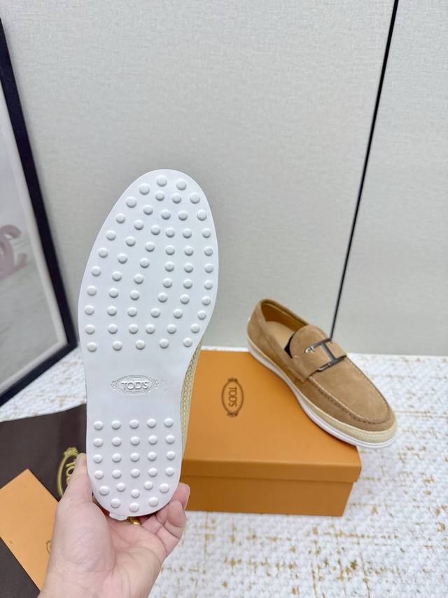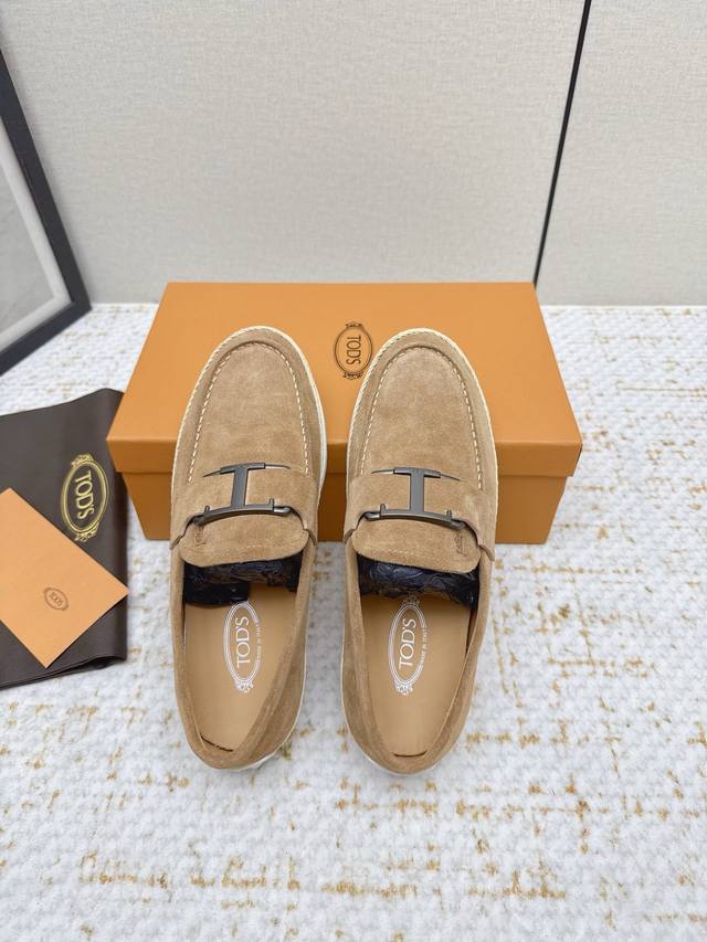 Tods loafers. These loafers are crafted from fine sheepskin leather, with a premium cowhide lining, adorned with a metal logo buckle, and feature a rubber outsole with pegs at the heel. Casual and versatile, they are a timeless classic. Sizes #39-45, sizes 38 and 46 are custom-made.