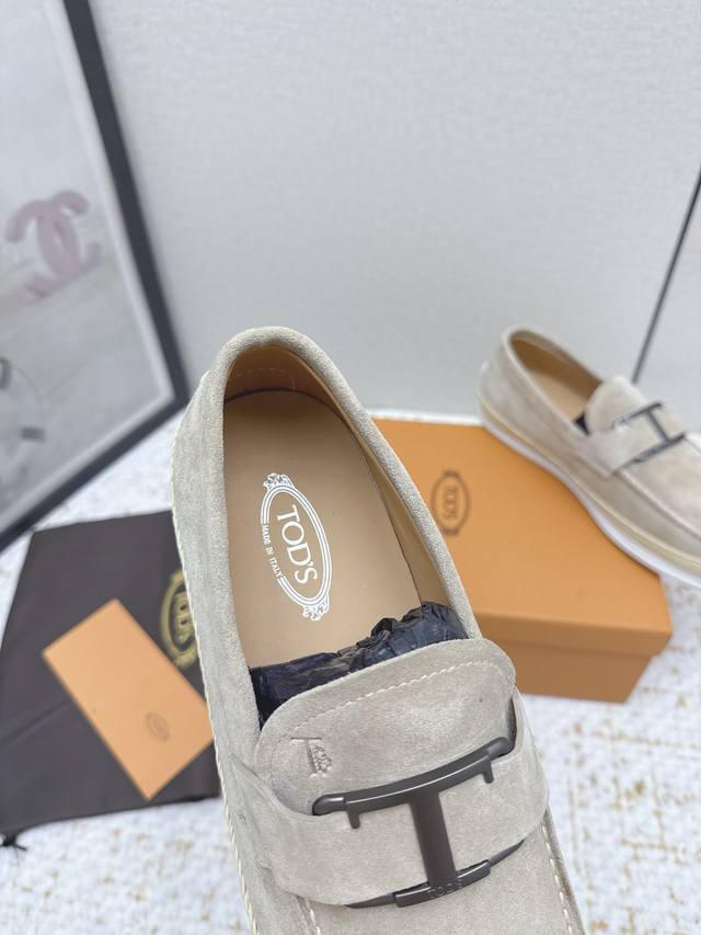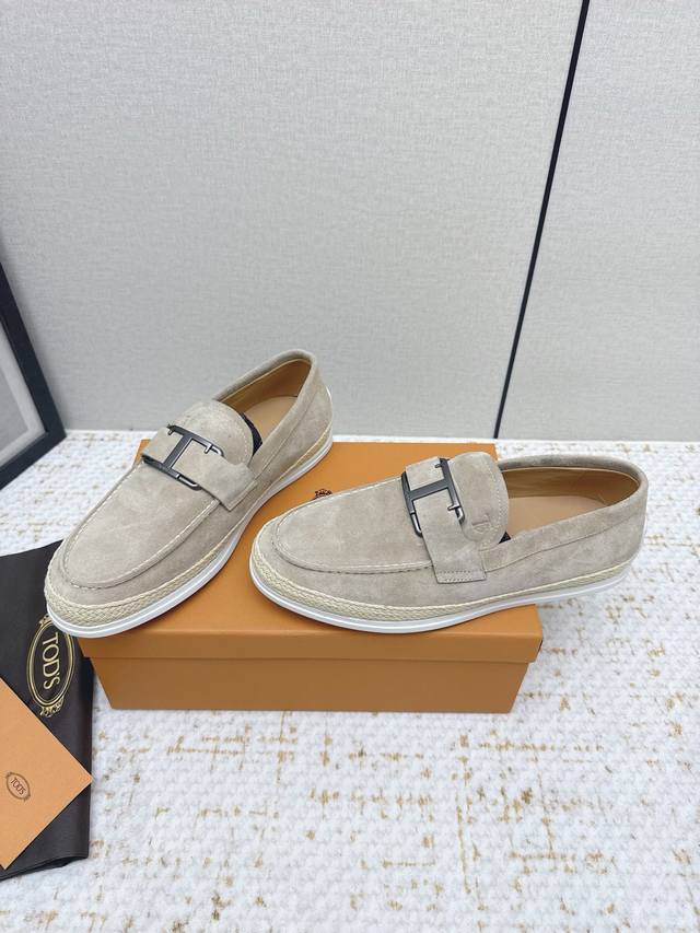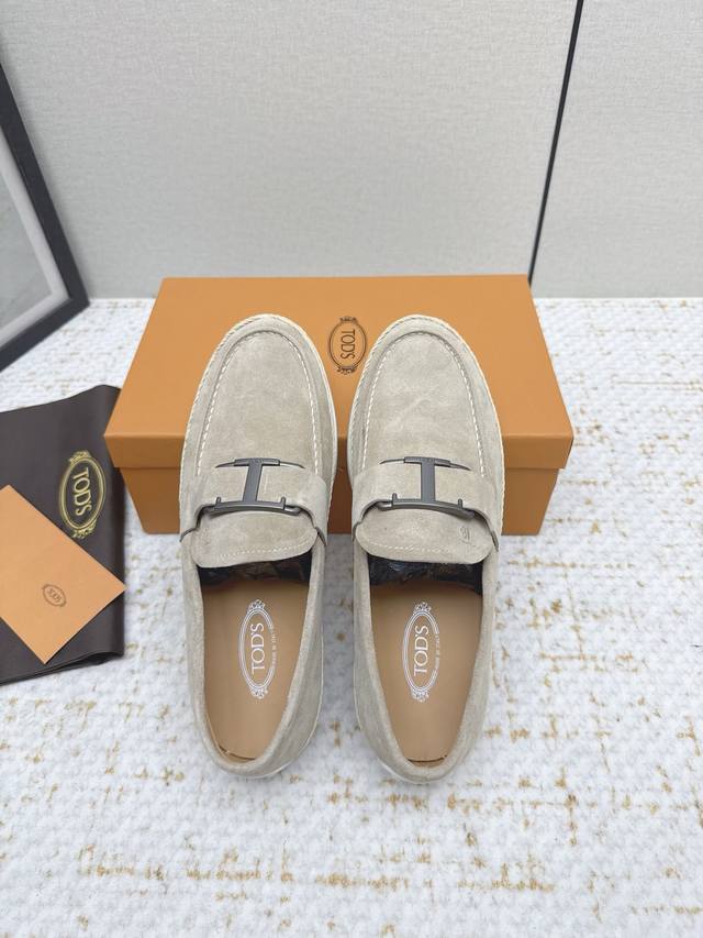 Tods loafers. These loafers are crafted from fine sheepskin leather, with a premium cowhide lining, adorned with a metal logo buckle, a rubber outsole, and a pebble heel. Casual and versatile, they are a timeless classic. Sizes #39-45, sizes 38 and 46 are custom-made.