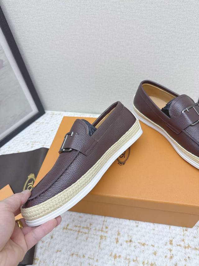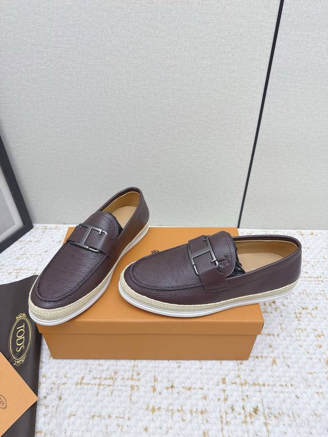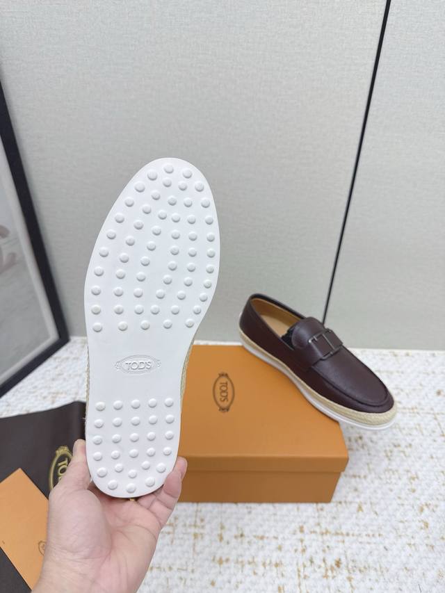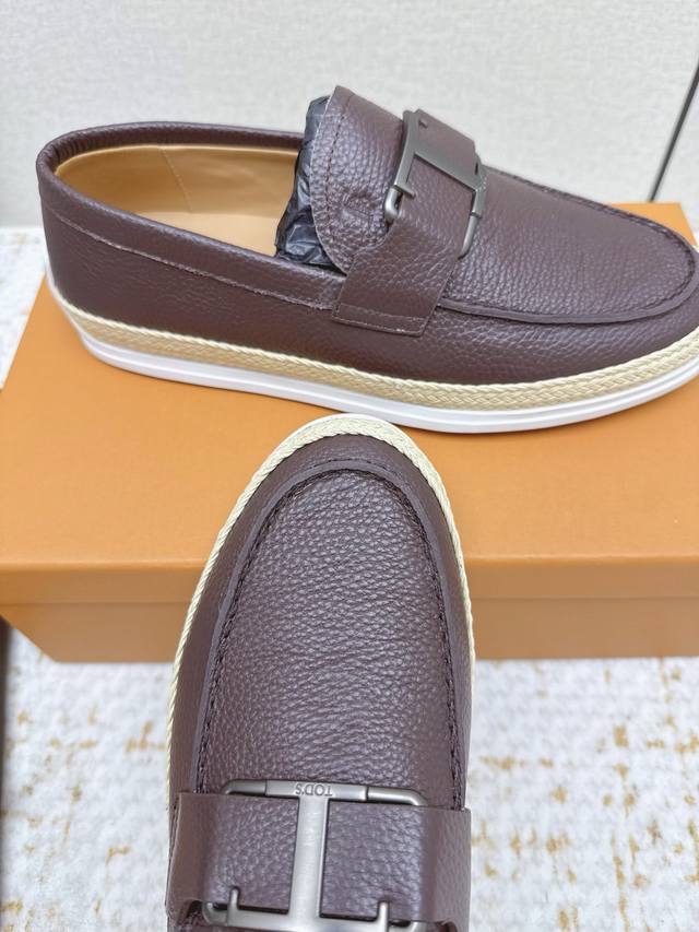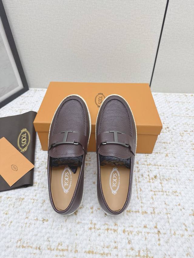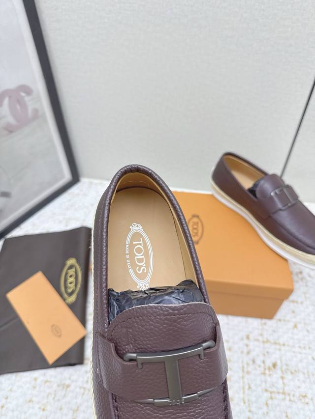 Tods loafers. These Tods loafers are crafted from fine sheepskin leather, with a premium cowhide lining, adorned with a metal logo buckle, and feature a rubber outsole with pegs at the heel. Casual and versatile, they are a timeless classic. Sizes #39-45, sizes 38 and 46 are custom-made.