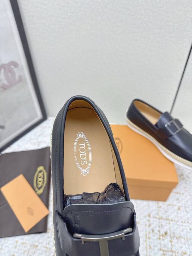 Tods loafers. These Tods loafers are crafted from fine sheepskin leather, with a premium cowhide lining, adorned with a metal logo buckle, and feature a rubber outsole with pegs at the heel. Casual and versatile, they are a timeless classic. Sizes #39-45, sizes 38 and 46 can be custom-made.