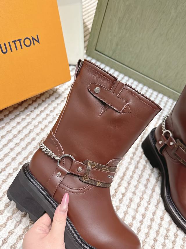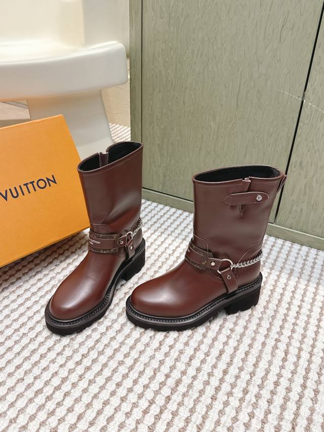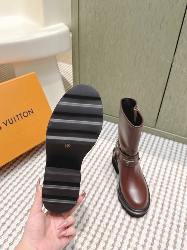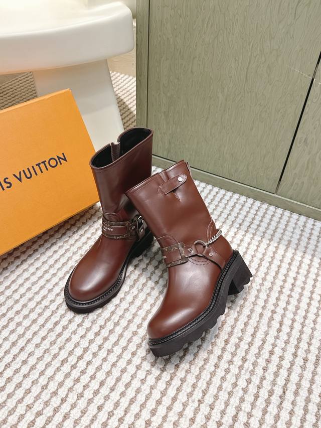 High-quality Louis Vuitton 25Ss Lv autumn/winter new high-heeled ankle boots. Versatile and slimming design. Three-dimensional and full shape, exuding elegance. Comfortable to wear. Very retro style, powerful presence. Original monogram design, classic style, perfect details. Size: 35-40, 40-41. Custom orders, no returns or exchanges.