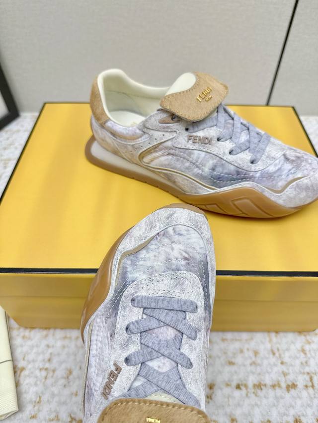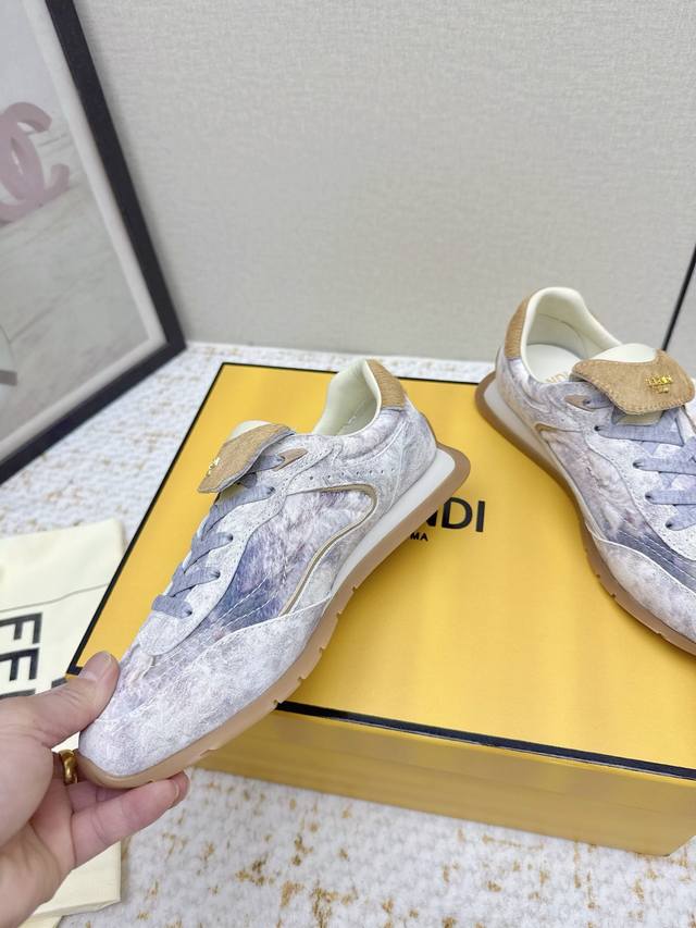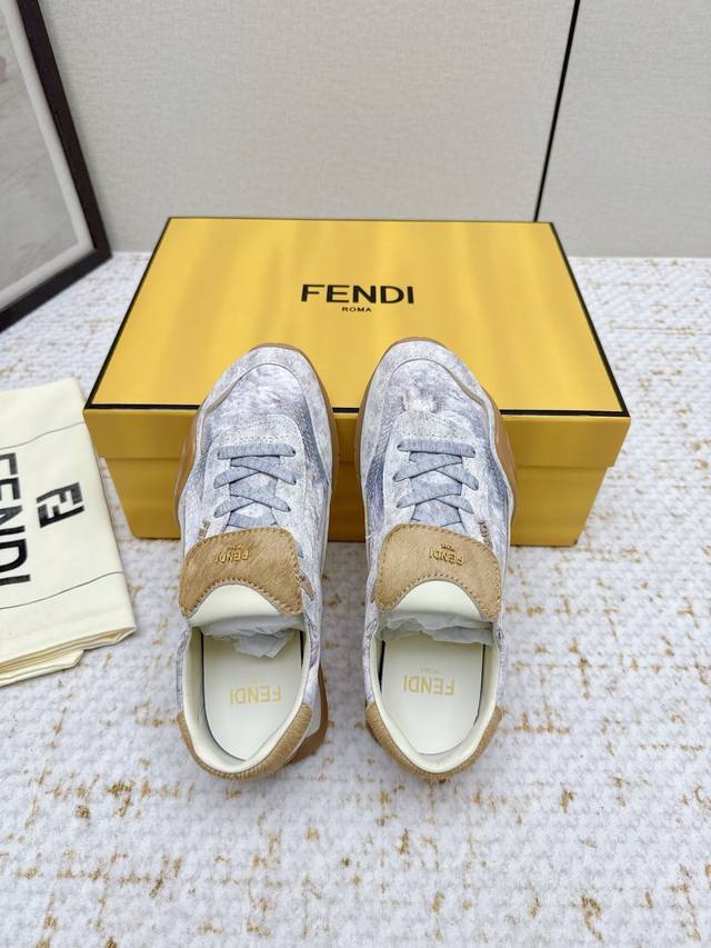 High-quality women's and men's shoes from the factory. Fendi's new arrivals - German training shoes for women, October new arrivals! These exquisite German training shoes have arrived, exuding a refined and sophisticated vibe. A milk apricot-colored embossed box bag with gold buckles and tassel details is both luxurious and playful. And these German training shoes, with their horsehair tongue and retro silhouette, are incredibly stylish. The complete outfit creates a sophisticated and relaxed atmosphere, making you look like a walking fashion magazine. #Fendi #GermanTrainingShoes The asymmetrical upper with its suede and suede textures, along with the flowing lines and stitching, evokes ripples in water, a tribute to Fendi's flowing and light tradition. The sole is inspired by the "Astuccio" fur inlay pattern, a unique feature that sets it apart from any of our other new sneakers. They look so good, so heartwarming! Sizes: 35-44