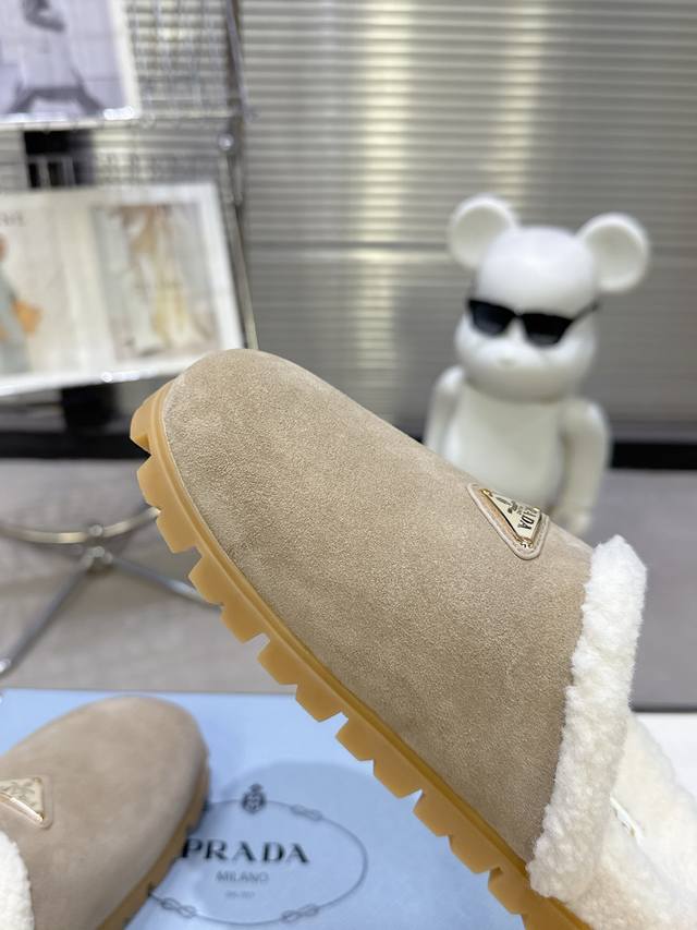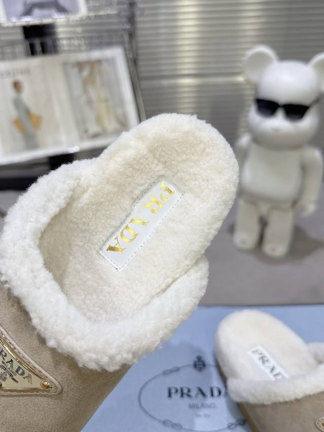 Latest Collection! Prada Fall/Winter New Style Furry Slippers Triangle Buckle Br