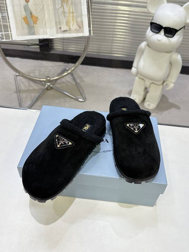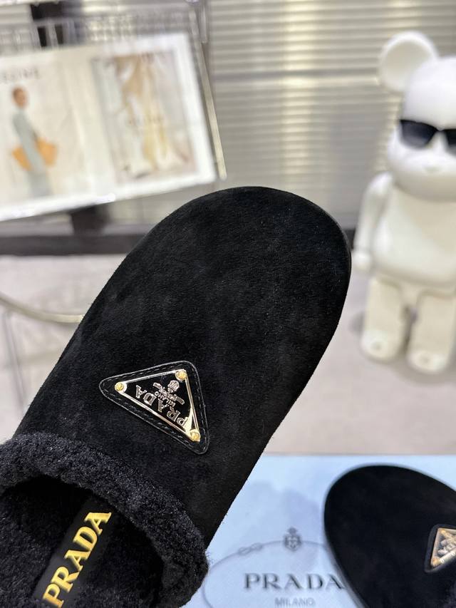 Latest Collection! Prada Fall/Winter New Style Furry Slippers Triangle Buckle Br