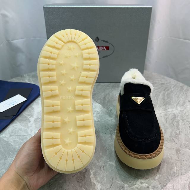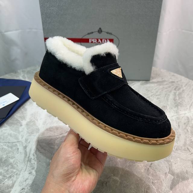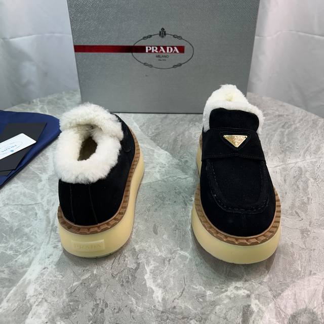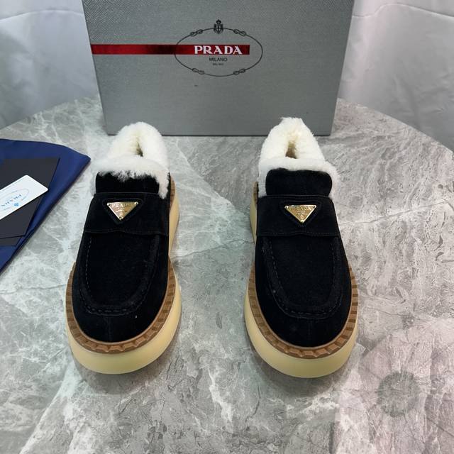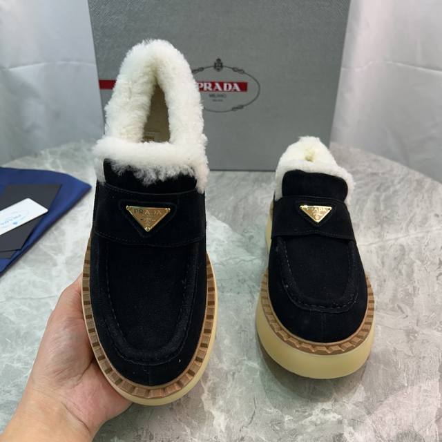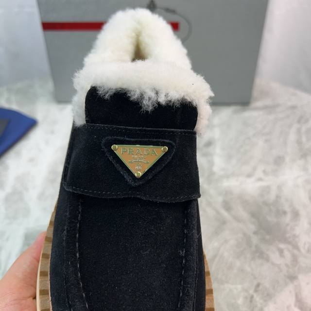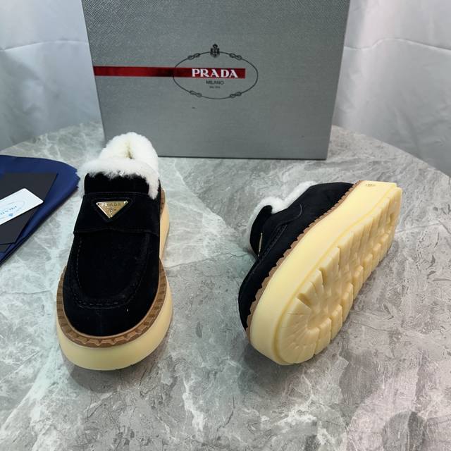 Latest P brand furry shoes Upper: High-gloss cow suede Lining: 100% genuine wool