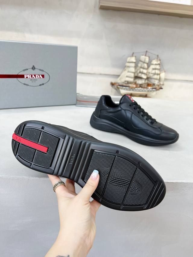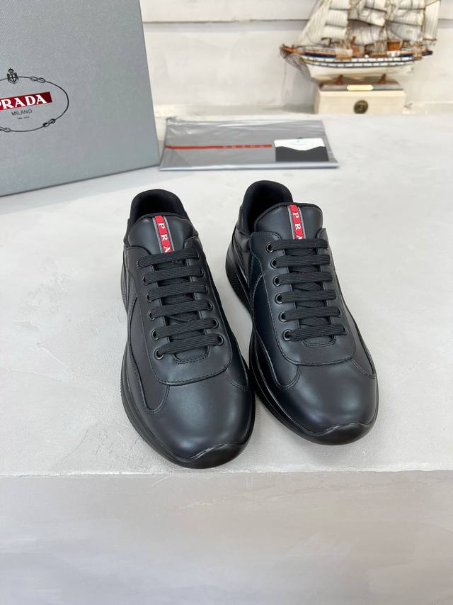 P Prada men's lace-up casual sports shoes, the upper is made of high-elastic fly