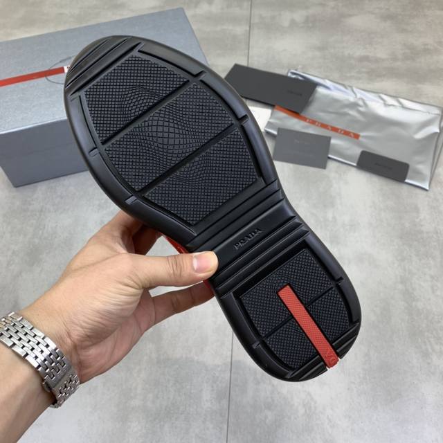 Prada top-of-the-line sneakers. Features include an imported flyknit upper with