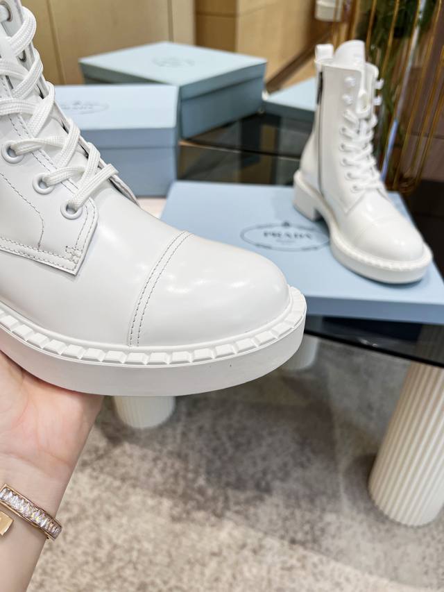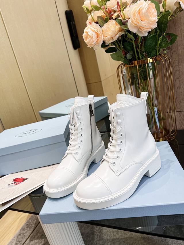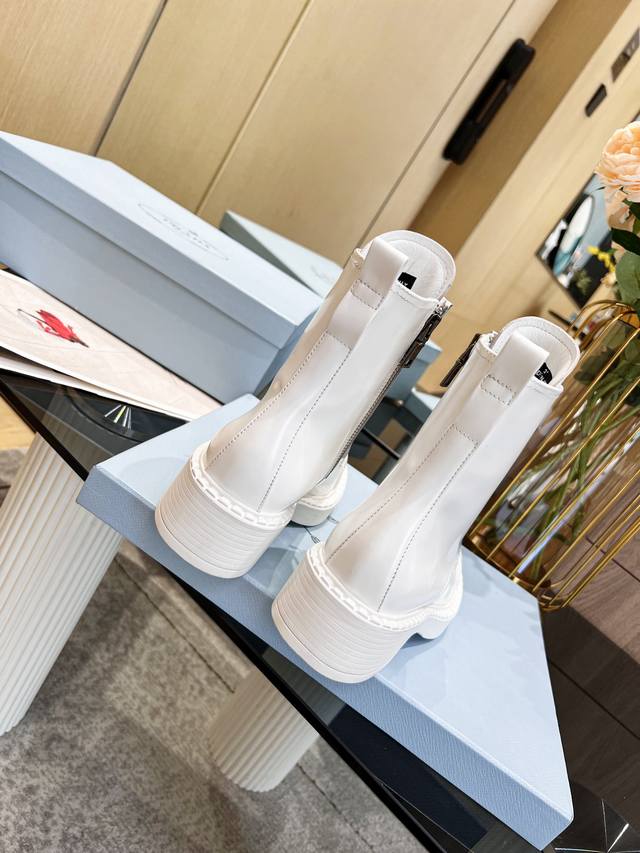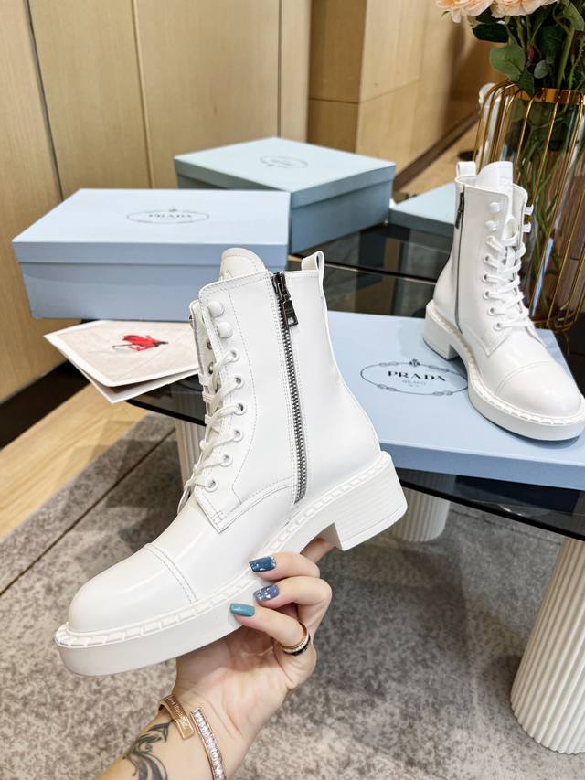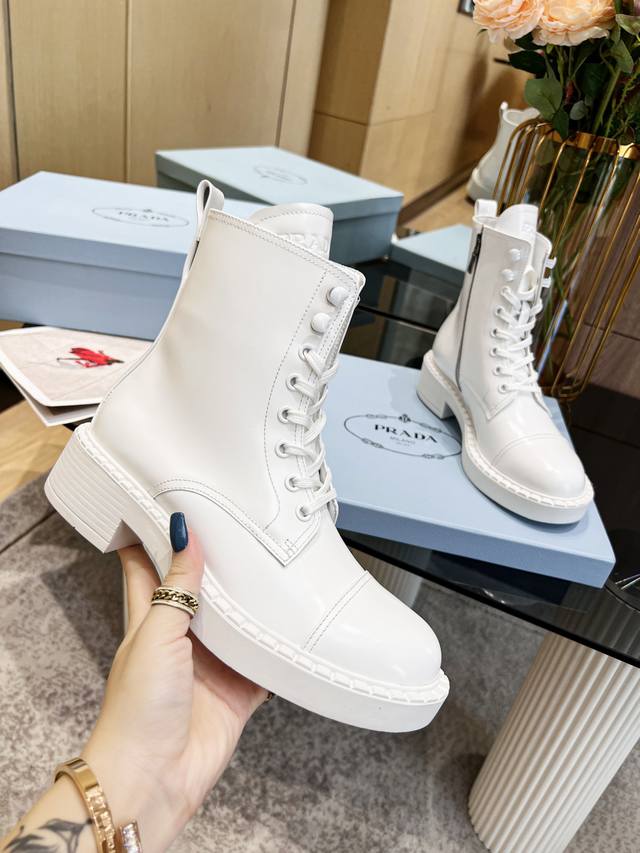 Top-tier Sss releases Prada ankle boot series 1. Prada's early autumn/winter runway show and influencer-endorsed "Dream City Never Sleeps" style. Prada boots are perfect for important occasions, offering a fresh yet slightly luxurious feel. They look absolutely stunning on the feet. Elegant and sophisticated, these boots are crystal clear. All accessories and materials are exclusively 1:1 custom-made, achieving zero deviation from the original. The entire series combines exciting and unexpected elements, allowing you to experience the ever-changing style of the Prada girl. 1. Upper: Imported split-edge cowhide; 2. Lining: Imported sheepskin lining; 3. Outsole: Original Italian TPU outsole; 4. Available in three colors, sizes 35-41.