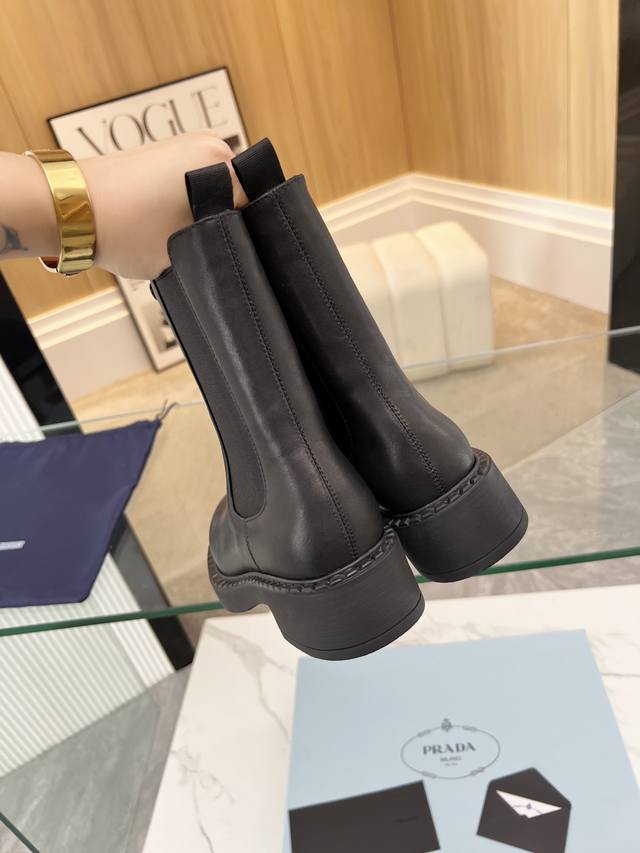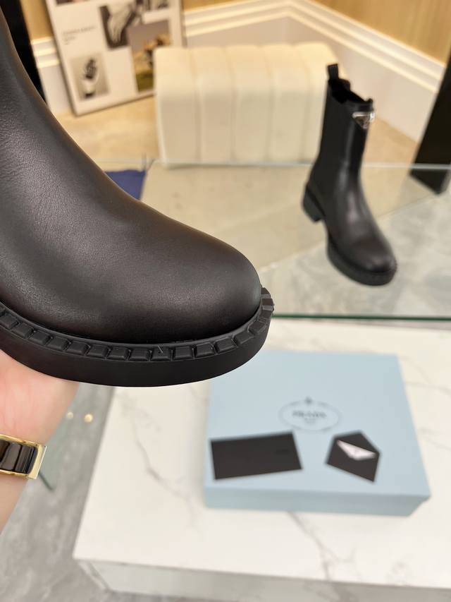 Top-tier Sss releases the Prada ankle boot series, featuring the Prada early autumn/winter runway runway and influencer-endorsed "Dream City Never Sleeps" style. Prada boots are perfect for important occasions, offering a fresh yet subtly sophisticated look. They're incredibly stylish and elegant, with a crystal-clear finish. All accessories and materials are exclusively 1:1 custom-made, ensuring zero deviation from the original. The entire series combines exciting and unexpected elements, allowing you to experience the versatile style of the Prada girl. 1. Upper: Imported calfskin patent leather, split-edge cowhide. 2. Lining: Imported sheepskin. 3. Outsole: Original Italian outsole. Sizes 35-41 available.
