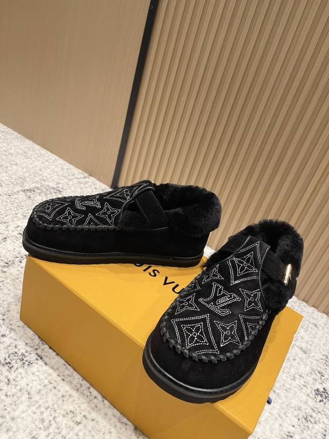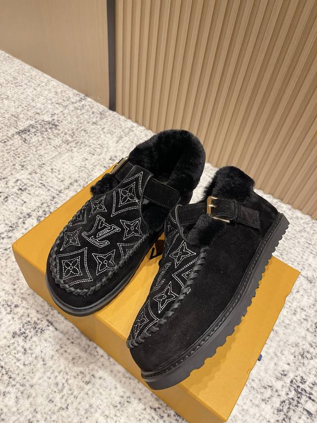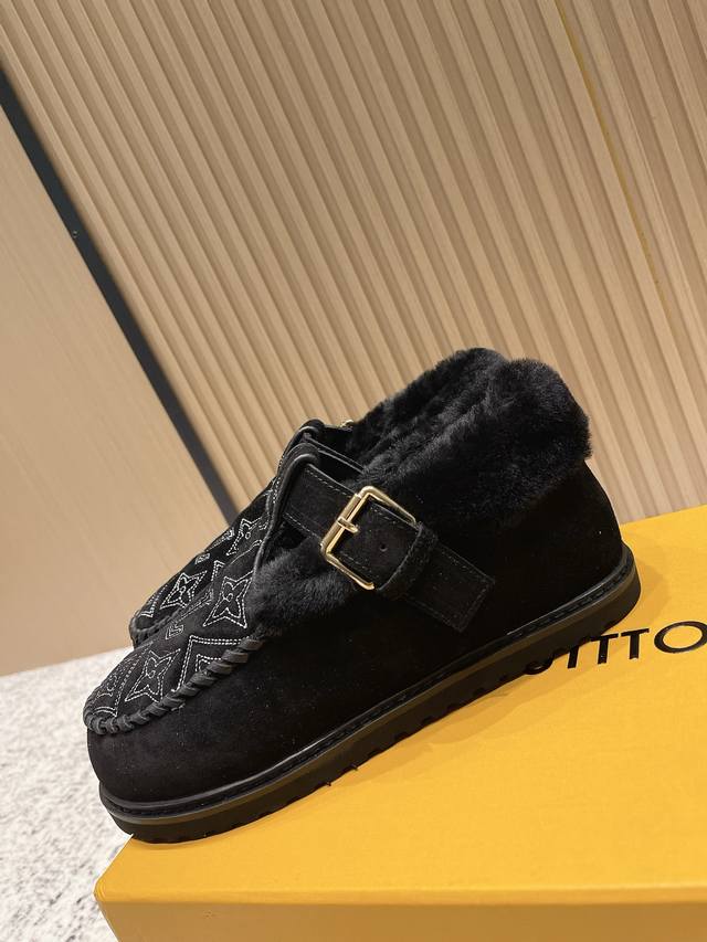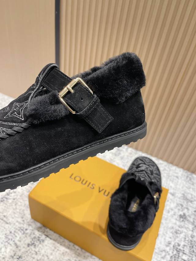 Top-tier version: Louis Vuitton Colorado series plush Mary Jane shoes. Original purchase and re-production. These Colorado plush Mary Jane shoes feature suede cowhide leather for a velvety texture, paired with a soft sheepskin lining. The LV lettering stitching on the upper and the engraved buckle on the adjustable laces enrich the brand details. A lightweight micro-outsole completes the trendy style. Comes with exquisite boutique packaging. Material: Original custom top-grain cowhide. Lining: Original custom warm sheepskin lining. Outsole: Original molded anti-slip rubber foam material. Sole thickness: 2cm. Size: Women's 35-41, 41 custom-made.