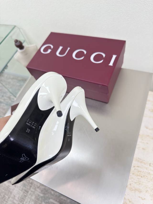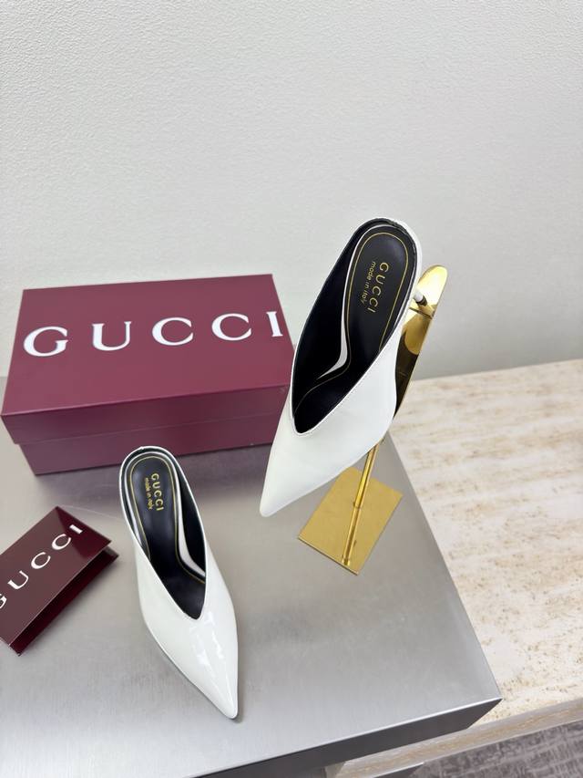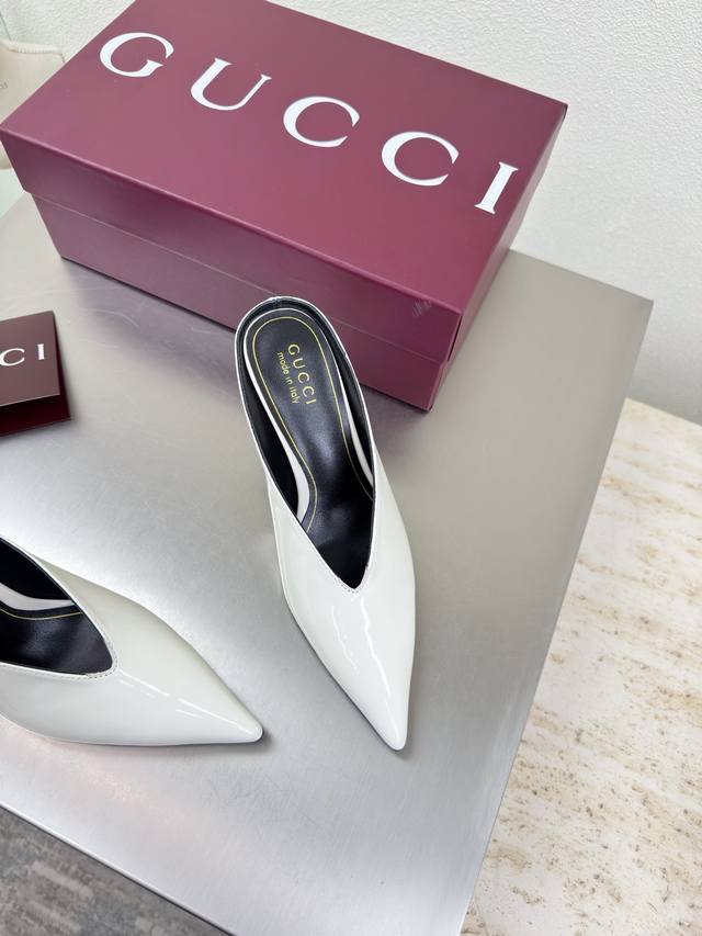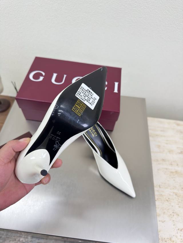 26 High-End Gucci Pointed-Toe Mules DDD White Calf Patent Leather Saddle Buckle New Gucci Ddd Hot Item Ddd The upper features original rhinestone inlays with the classic logo Ddd Exquisite gold insole logo Ddd Italian imported genuine leather outsole Ddd Sheepskin lining insole Ddd Classic hardware buckles original custom Ddd Sizes: 35 36 37 38 39 40 41 42 Ddd Custom sizes 40 41 42 Ddd Comes with original packaging Ddd