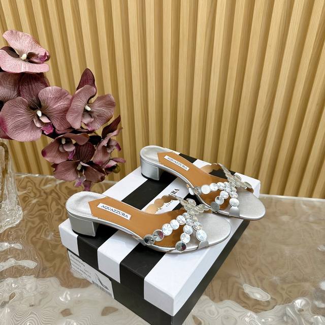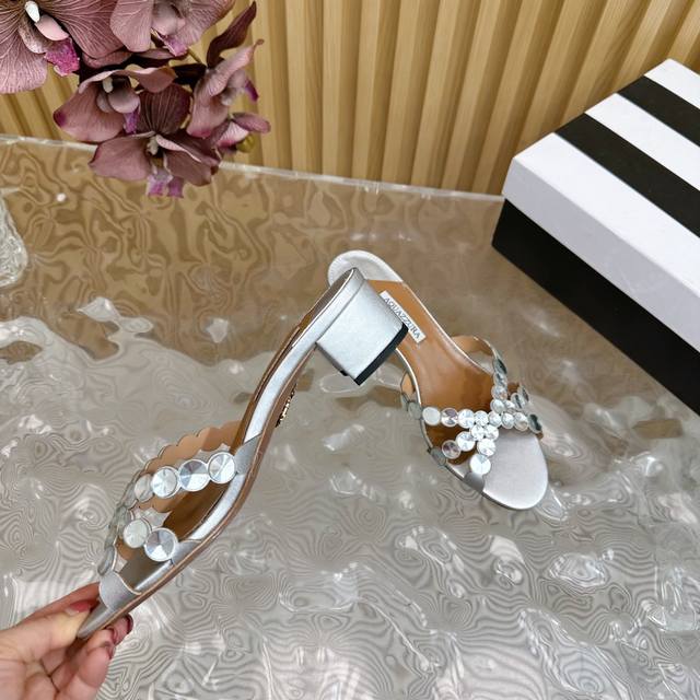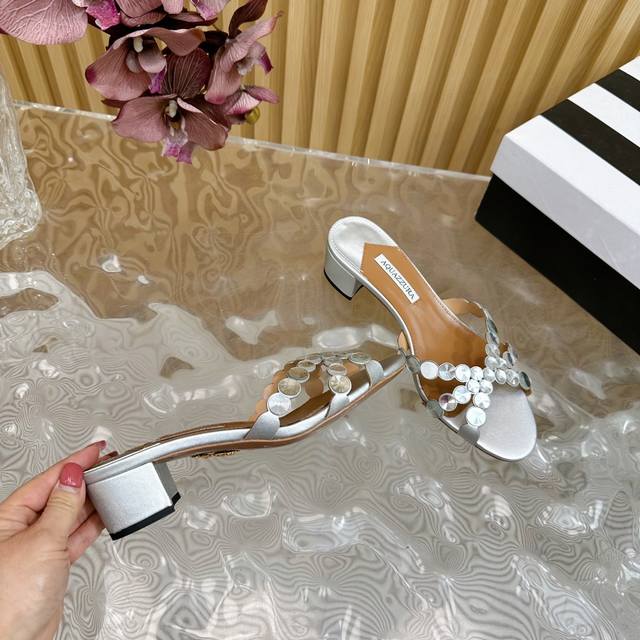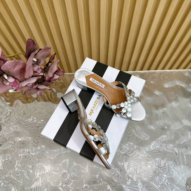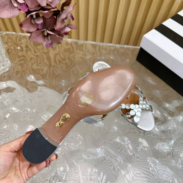 Aquazzura New Top-Tier Pineapple Women's Twisted Rhinestone Sandals with Chunky Heel, 1:1 Original Mold! Shine brightly! Imported sheepskin paired with an original molded heel, simple and elegant, making the shoes more feminine. Suitable for parties, suitable for various skirt suits, dresses, evening gowns, and nightclubs. 9.5cm heel height with Swarovski crystals. Exudes a noble temperament in any occasion, easy to match, a must-have for all seasons. _____________________________ * Full packaging. * Upper: Cowhide * Lining: Sheepskin * Sole: Italian genuine leather outsole * Heel height: 4.5cm * Sizes: 35-43 Orders of 40, 41, 42, and 43 are non-refundable.