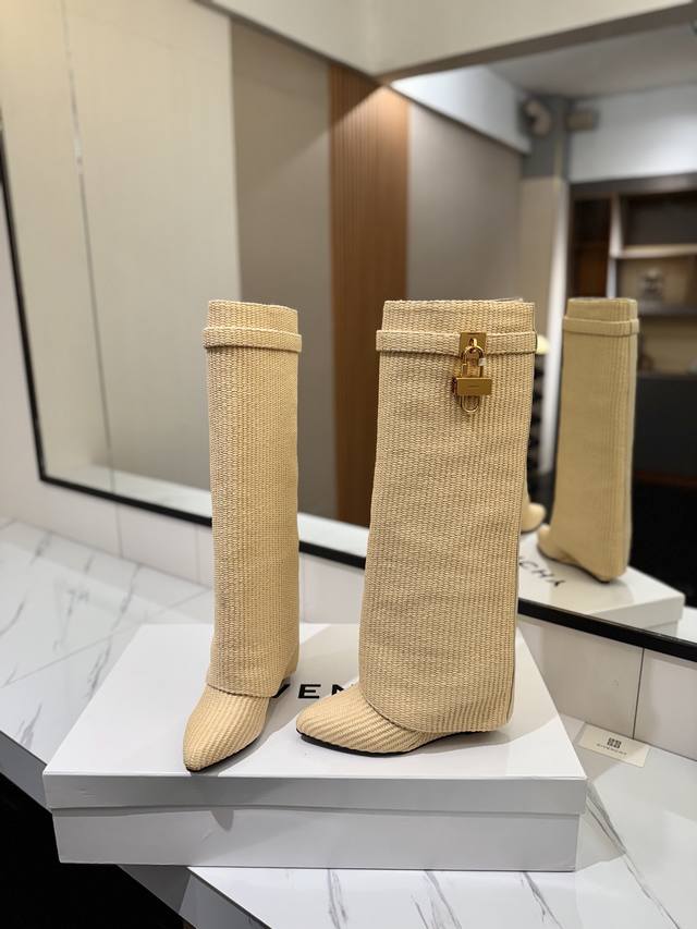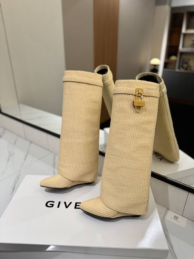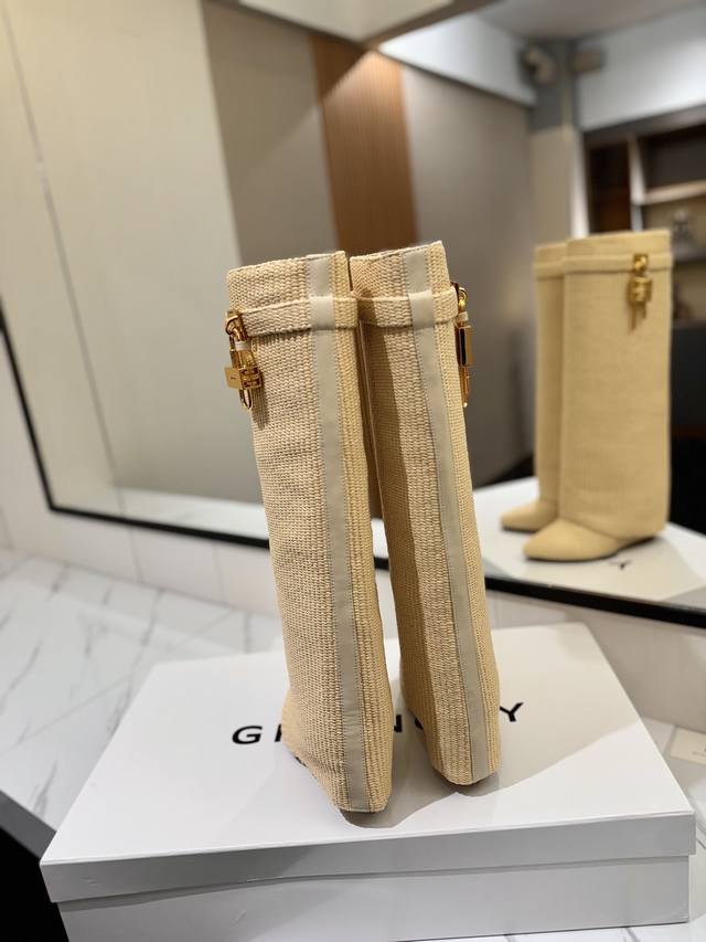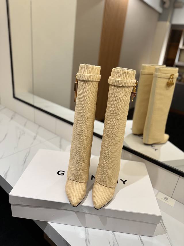 Authentic, Custom-Made Givenchy 2025 New High-Heeled Boots, Top-Quality Version on the Market. The Givenchy buckle is a fashion icon. Original design, super accurate and highly realistic. Excellent fit, slimming, and luxurious. Super comfortable. Upper: Woven. Lining: Calfskin. Custom-made matching mold with iconic logo buckle. Buckle available in pure silver, pure gold, or a gold and silver mix; please specify your preference in the order notes. Heel: 8.5cm, matching mold. Outsole: Imported genuine leather. Sizes: 35-40 (34.40 41:42). Customizable, non-refundable .
