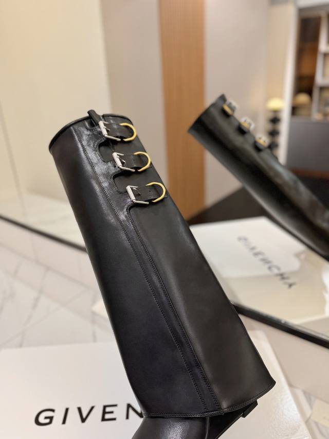 Authentic, Custom-Made Givenchy 2025 New High-Heeled Boots, Top-Quality Version on the Market. The Givenchy buckle is a fashion icon. Original design, super accurate and highly realistic. Excellent fit, slimming, and luxurious. Super comfortable. Upper: Imported cowhide. Lining: Calfskin. Custom-made with the signature logo buckle. Heel: 8.5cm. Outsole: Imported genuine leather. Sizes: 35-40 (34.40). Customizable, non-refundable.