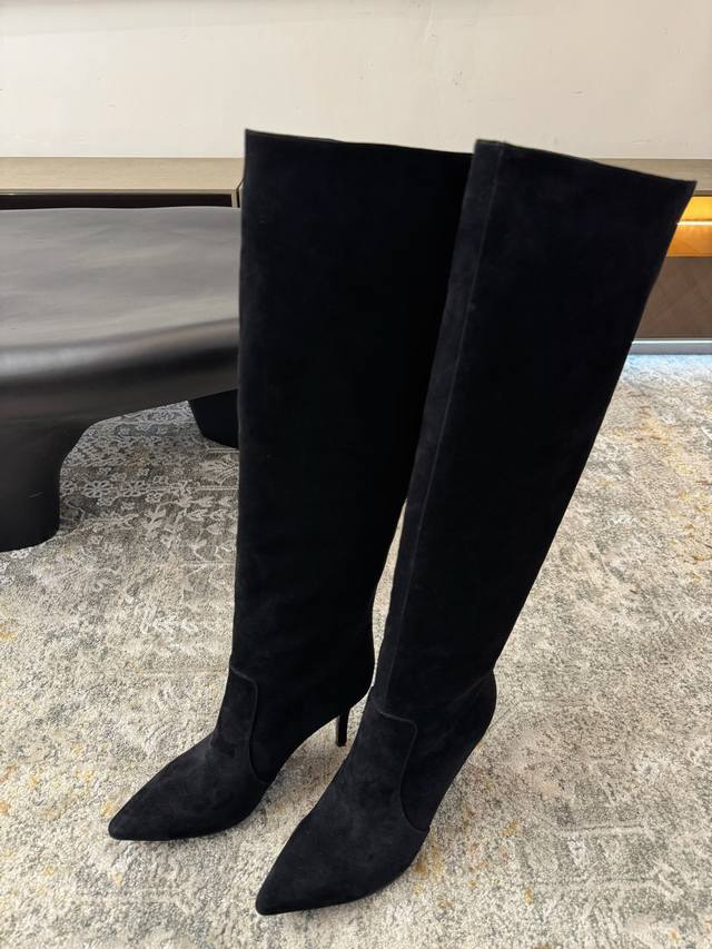 Autumn/Winter New Arrival Material: Cow Suede Lining: Sheepskin Sole: Cow Leather Elegant Style Creates a Unique Feel Heel Height: 8.5cm Boutique Packaging Simple and Stylish Design! Show Details Size: 35-39 40 41 Customization Available