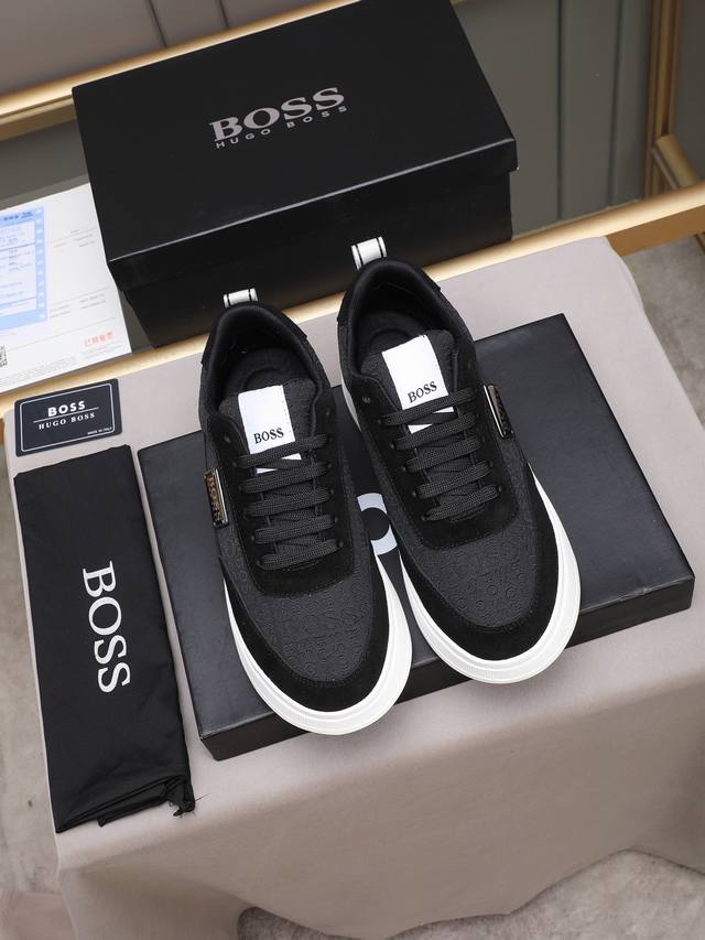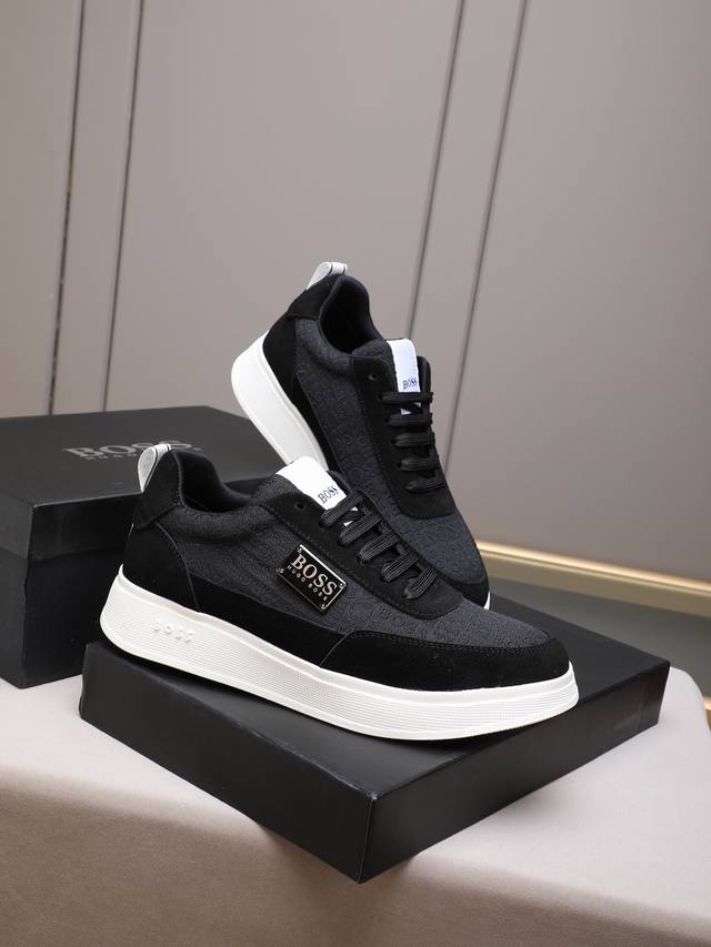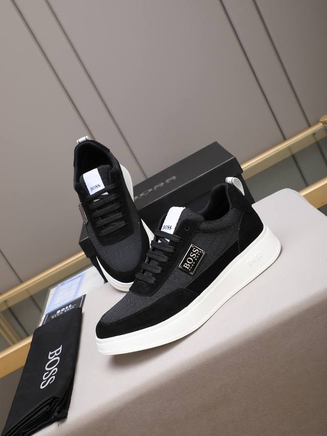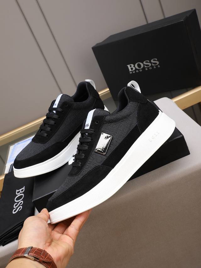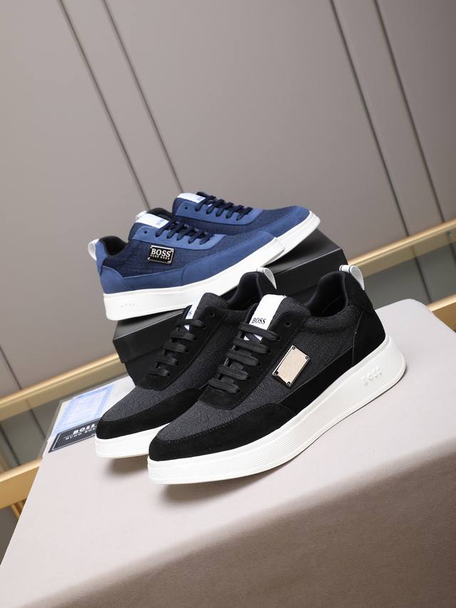 Boss's hottest style features a cowhide upper with embroidered waterproof fabric, an ultra-lightweight foam outsole, easy to put on, lightweight, comfortable, and elastic