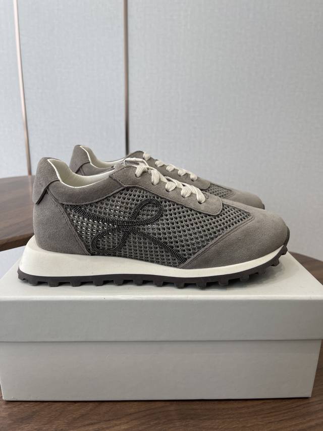 Brunello Cucinelli 26Ss Women's Beaded Flyknit Casual Sneakers Bc New Arrival Women's Striped Suede Single Shoes: Sheepskin Insole. Beaded Sneakers Ddd Upper: 1:1 replica high-gloss, cowhide splicing special material Ddd Matching hardware chain that won't fade, hardware ruler without bubbles Ddd Lining: Sheepskin lining Ddd Insole: Sheepskin insole, high-density elastic latex removable independent high-elasticity latex insole Ddd Outsole: Original rubber sole with wear-resistant fleece outsole, ultra-light outsole Ddd Sizes: 35-42 35, 41 are custom-made and non-refundable Ddd