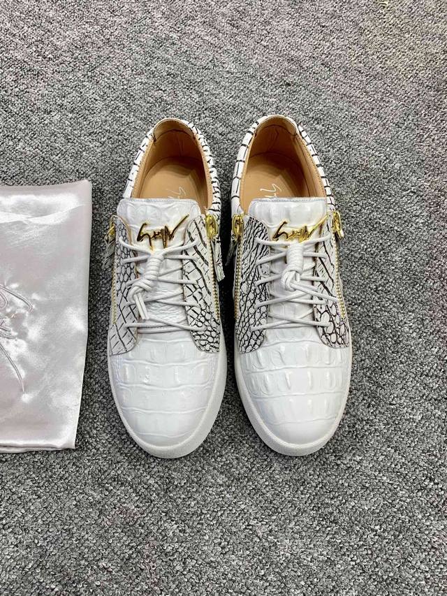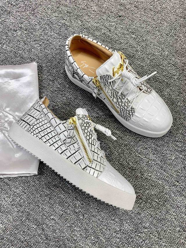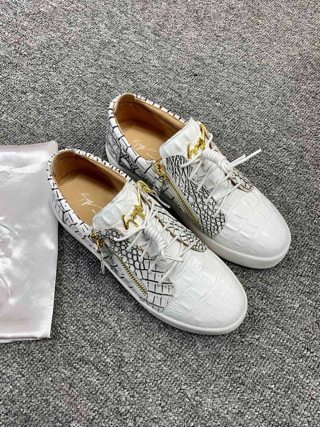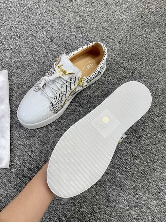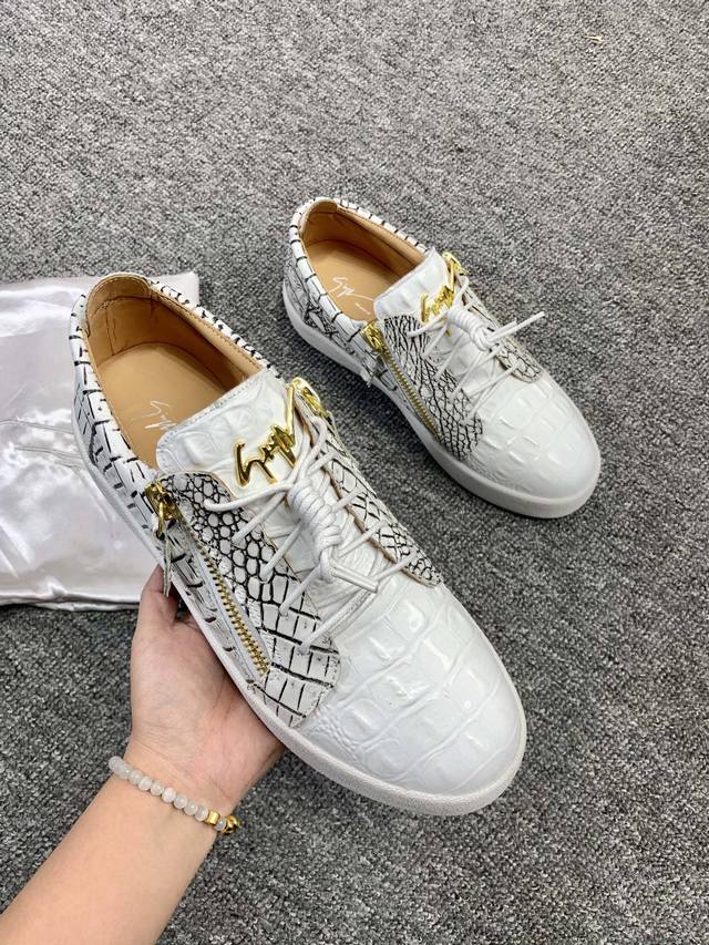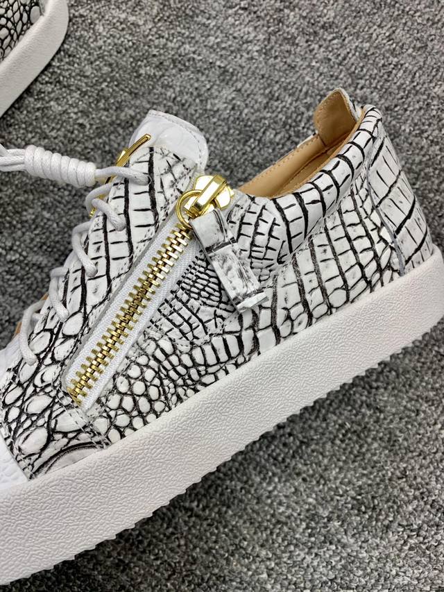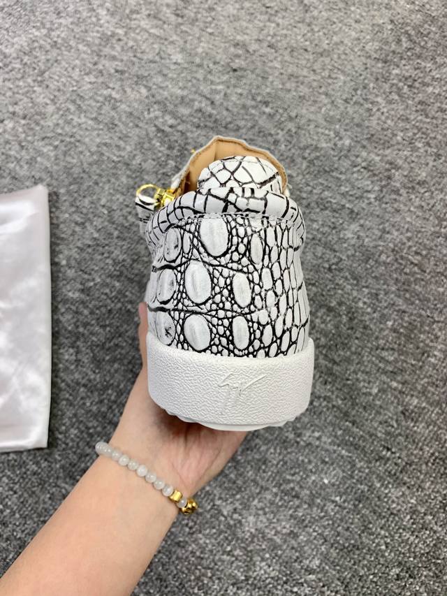 Custom-made item at a fixed price, low-top black and white crocodile pattern! Latest and highest quality version! Newly molded and customized! All-leather, Giuseppe Zanotti high-end couple's item, original high-grade metal buckle, top-grain calfskin lining, custom-molded original sole, absolutely high-end. Women's sizes 35-40, men's sizes 38-46. High-end customization, two-day delivery. Many other styles are available; those who prioritize price over quality, please do not apply. DDD