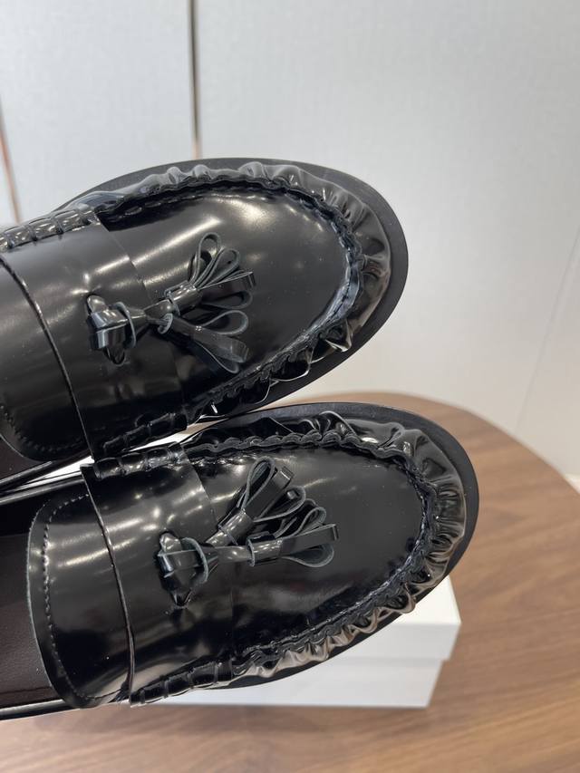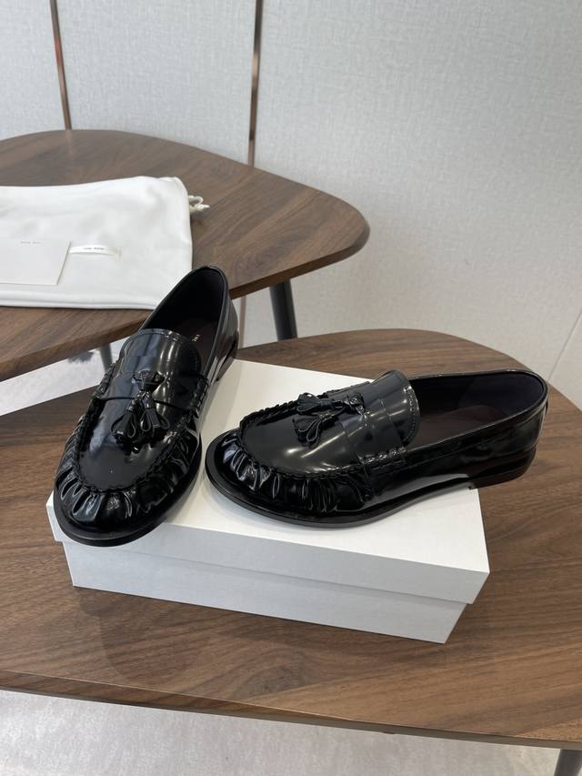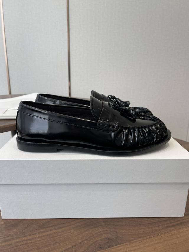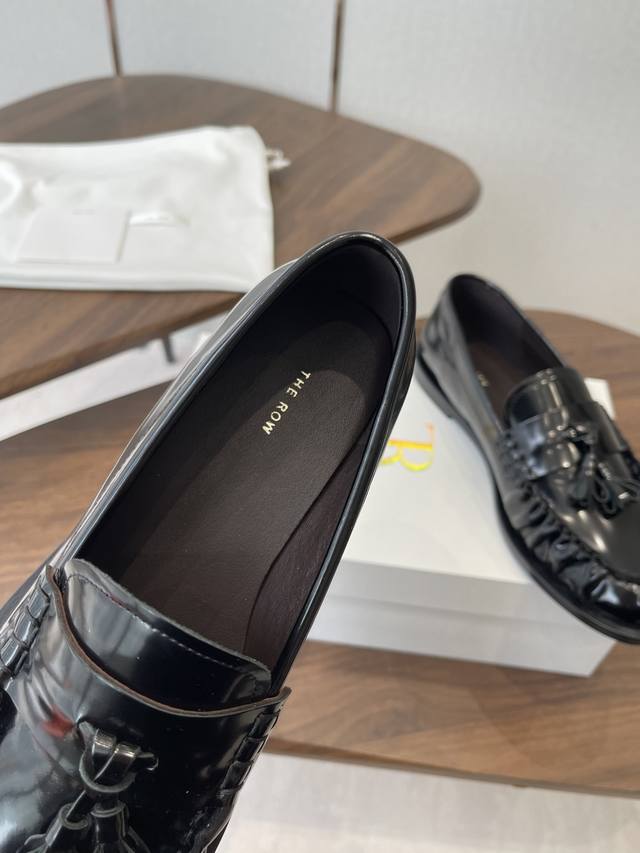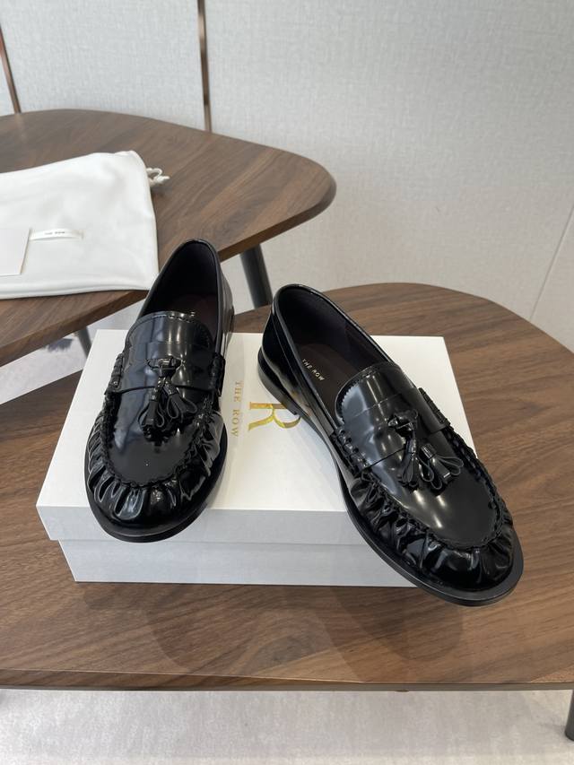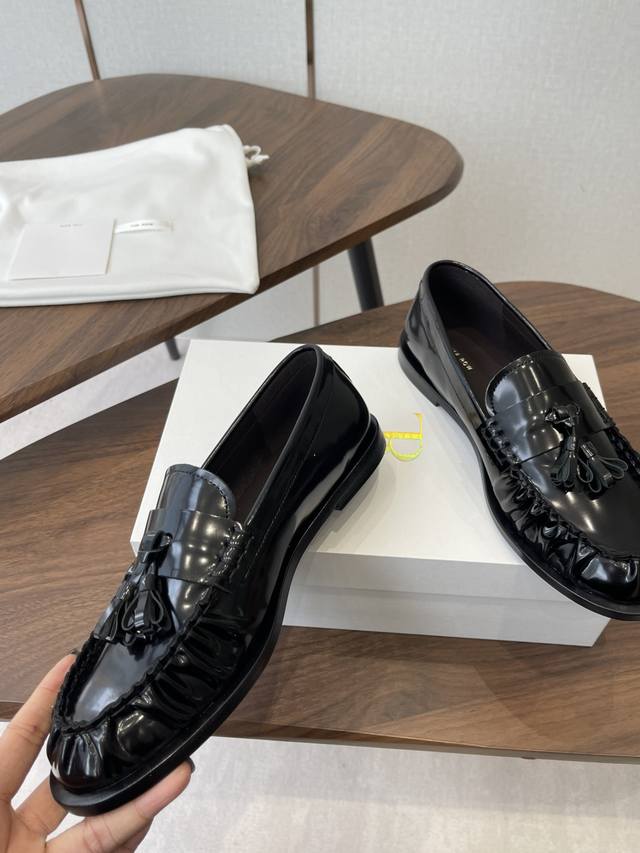 Dongguan-made The Row 25Ss Autumn/Winter New Minimalist Flat Pleated Tassel Loafers Casual Shoes DDD A minimalist and sophisticated loafer style, paired with tassel embellishments and pleated toe details, retaining a classic feel while maintaining the brand's signature understated elegance. The lining is made of soft and delicate lambskin; the stitching is exquisite. DDD Ultra-lightweight and soft, with good support but not tightness, combining comfort and fit; the slip-on design makes them easy to put on and take off. Suitable for commuting, casual, and other styles, a wardrobe classic of "understated luxury + versatile practicality". DDD Upper: Imported calfskin Ddd Lining: Imported lambskin Ddd Outsole: Italian genuine leather injection molding Ddd Heel height: 2.5Cm Ddd Size: 35-40, size 40 is custom-made and non-refundable DDD