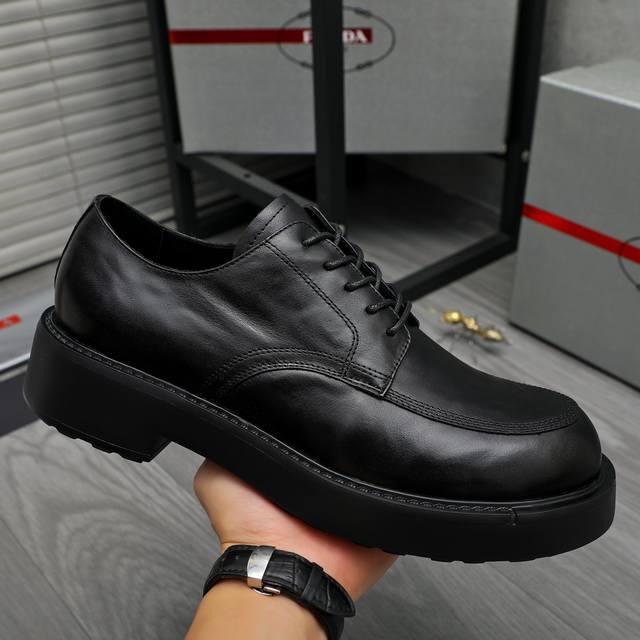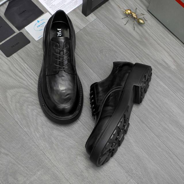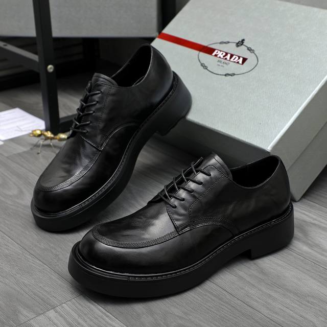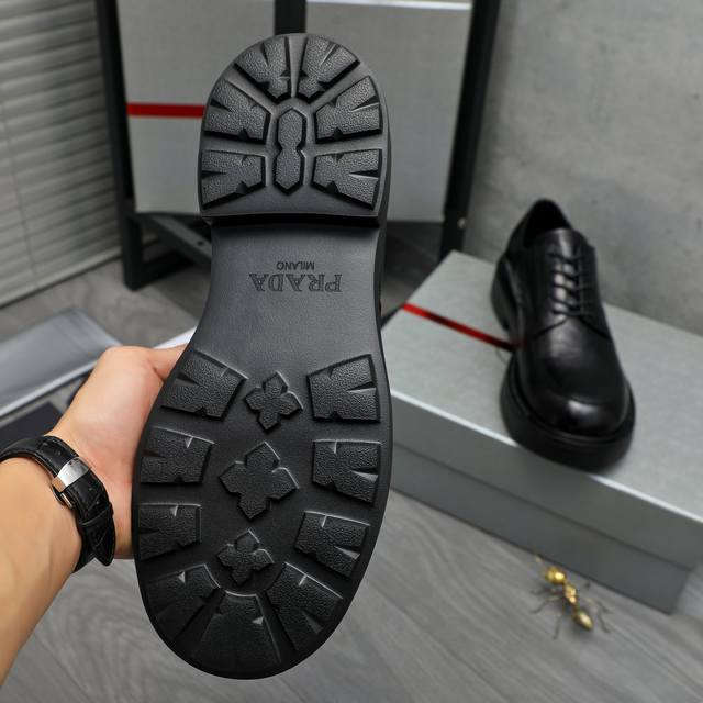 Factory direct price men's clothing, shoes, sportswear, original brand, trademark: Prada business formal leather shoes. Sizes: 38-44, 45. Custom orders are non-refundable. Materials: Selected high-quality cowhide upper, cowhide lining, original rubber non-slip outsole.