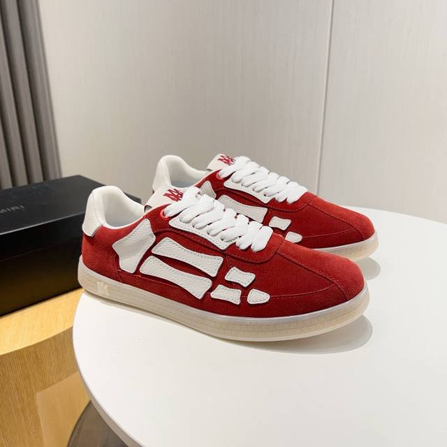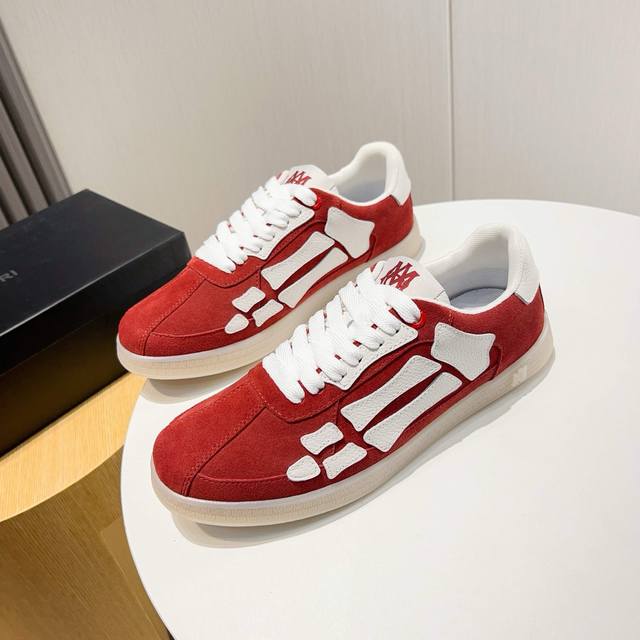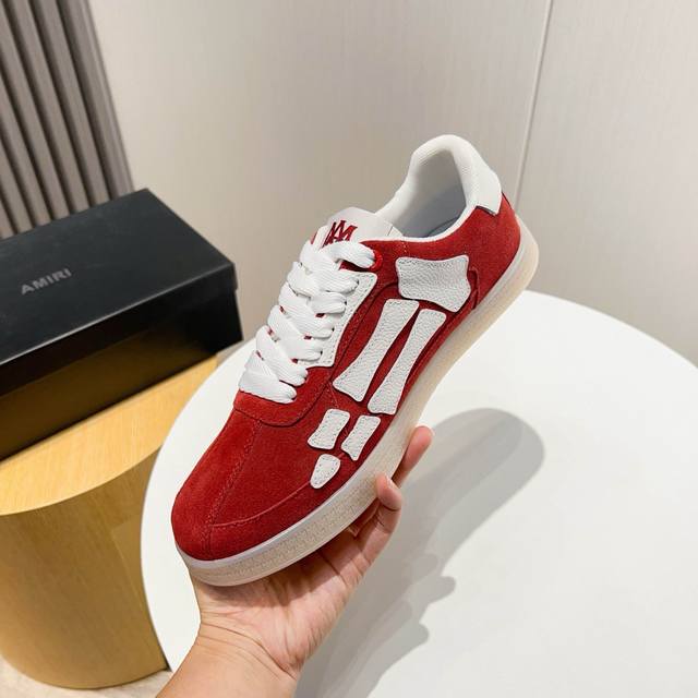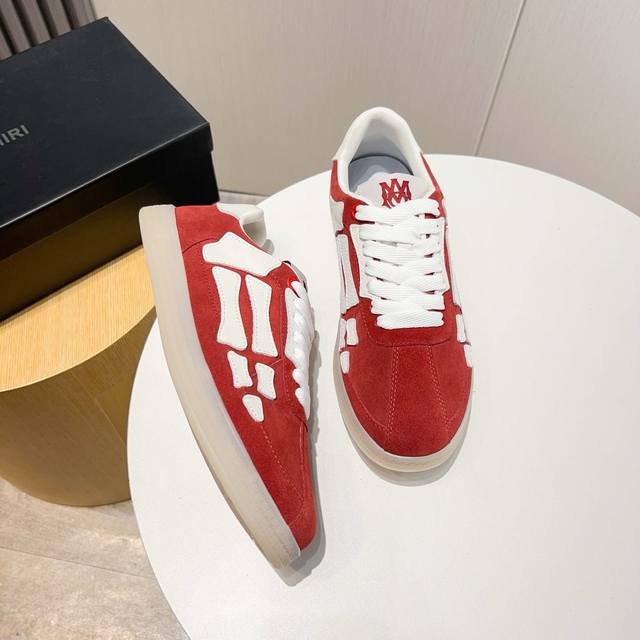 Factory direct price new Amiri trendy shoes, low-top casual sports shoes, celebrity style, made of selected suede cowhide with bone-style stitching, original outsole, comfortable to wear, high-end workmanship and texture. Welcome to purchase. Size: 39-45, 46 (custom sizes available).