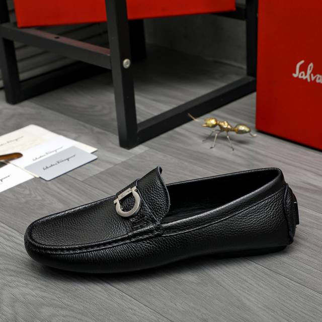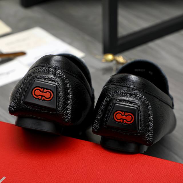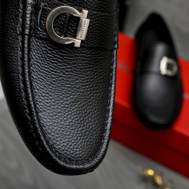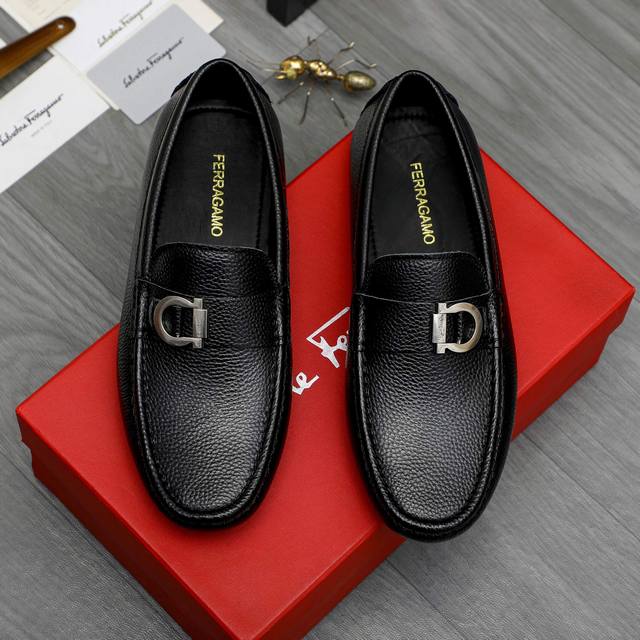 Factory direct price product trademark: Ferragamo] Casual slip-on men's shoes Ddd True to size: 38-44 Ddd Product materials: Selected lychee-patterned cowhide upper, sheepskin lining, original rubber outsole DDD