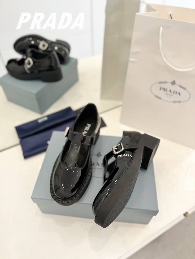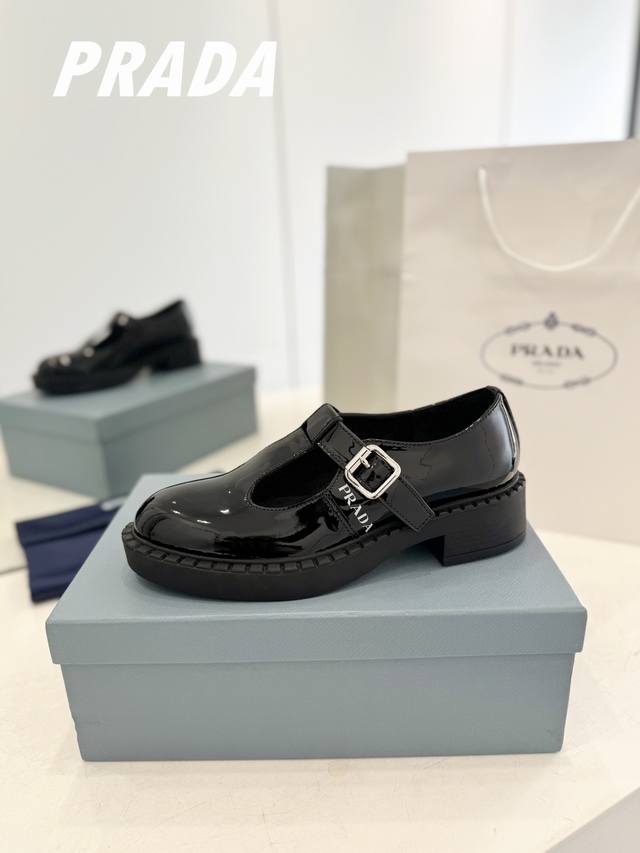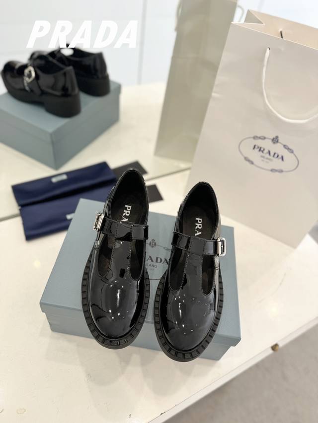 Factory direct price top-tier Prada openwork T-strap upper, Mary Jane British retro design, classic and timeless! Original molded last, perfect 1:1 shape, imported high-end materials present exquisite texture! The upper is made of original imported split-edge cowhide, the lining and insole are made of imported water-dyed cowhide, custom-molded A-grade high-density TPU outsole, luxurious packaging! Unique quality. Sizes: 35-41. Sizes 40 and 41 are custom-made and non-refundable.