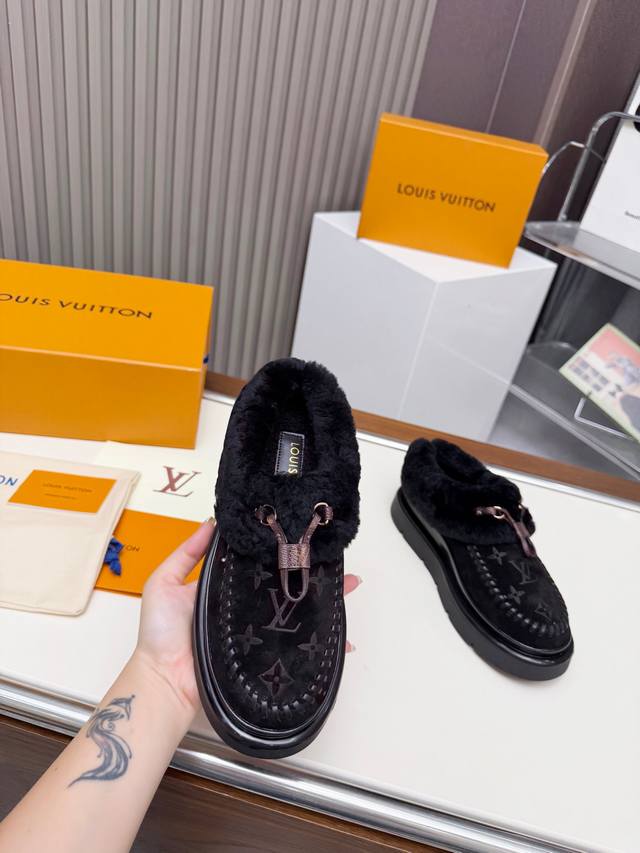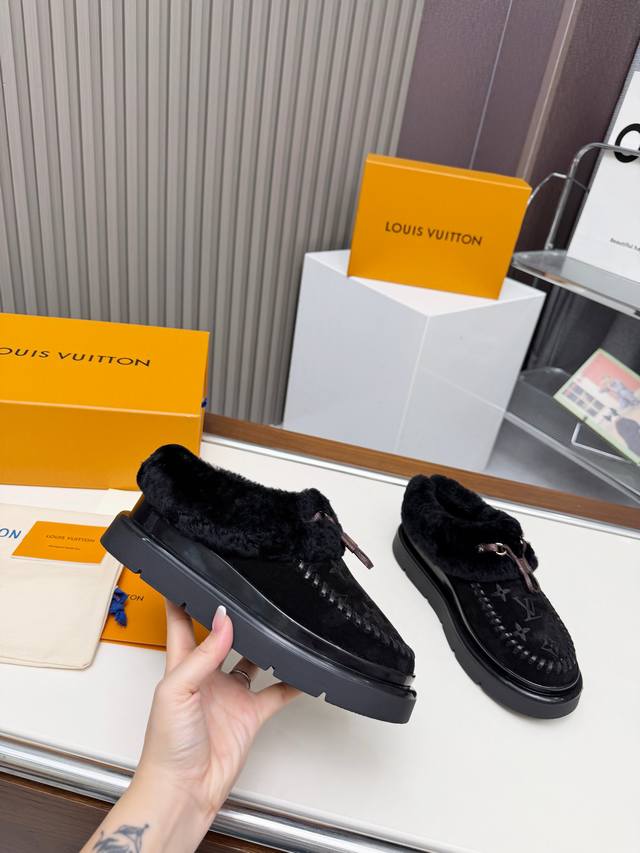 Factory direct price women's shoes sportswear original single size: 35-42 42 custom-made, no returns or exchanges Louis Vuitton Fall/Winter latest fur slippers 2025Lv runway style Upper: Imported high-gloss cowhide Lining: Super warm fur lining Original mold foam combination sole, complete exquisite packaging