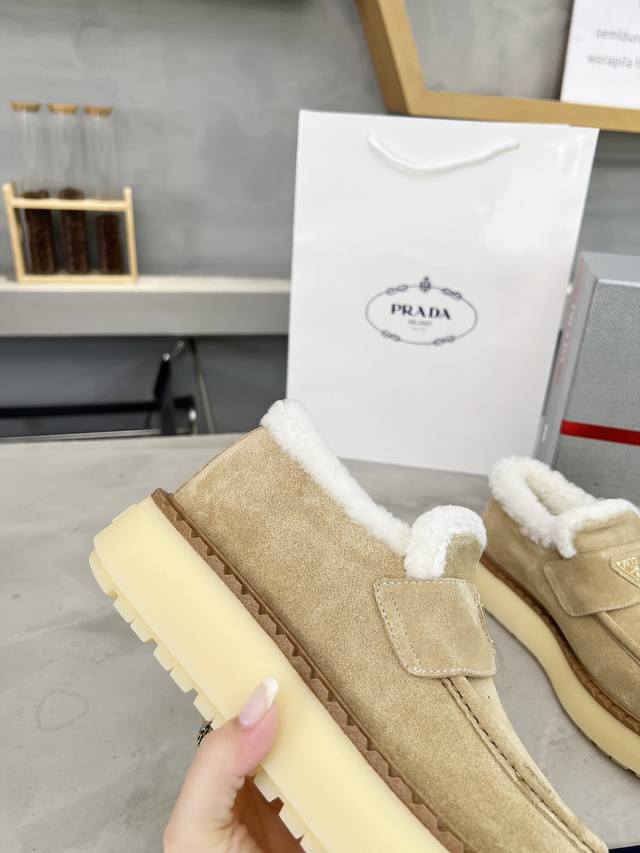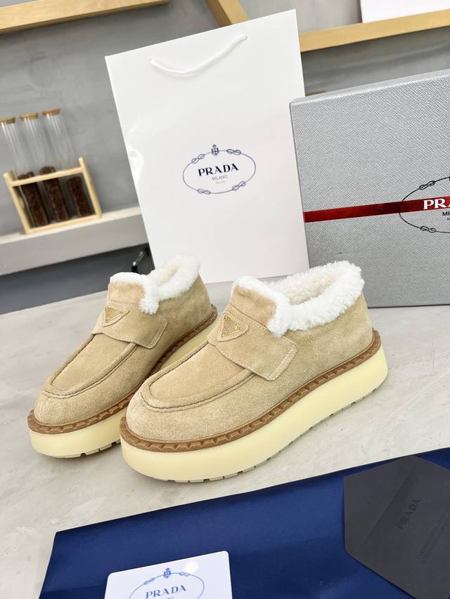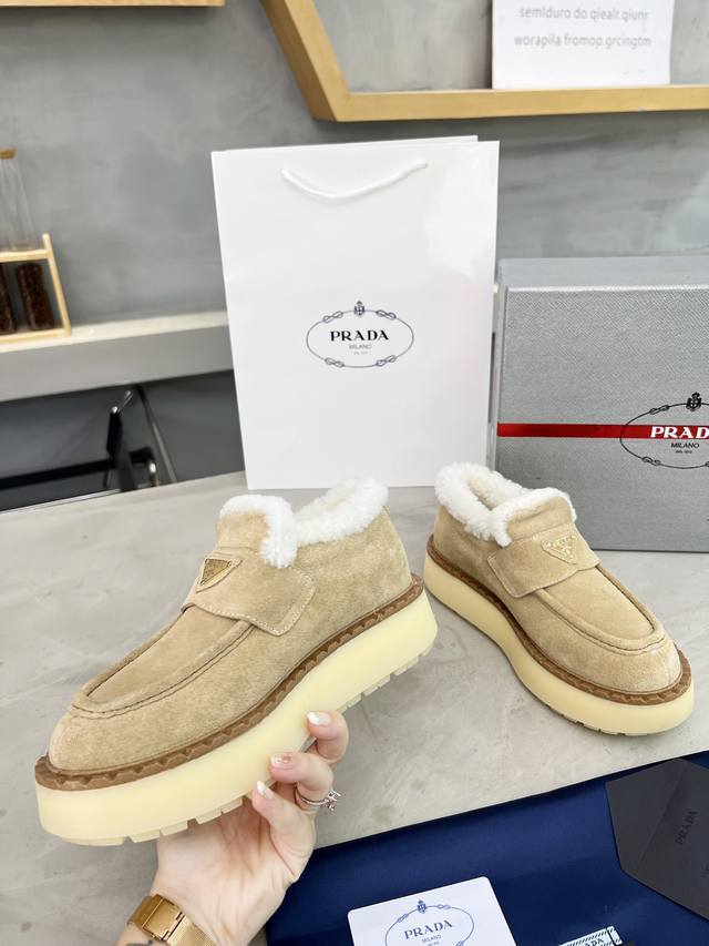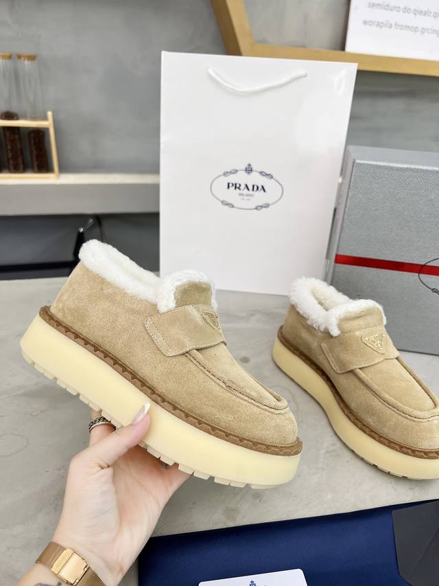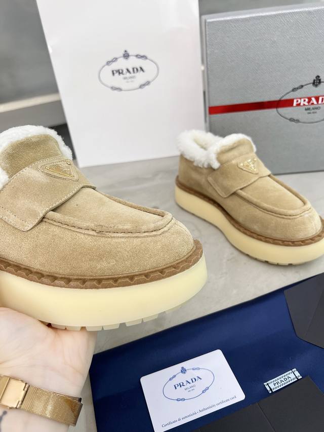 Factory direct, Pujia reissue: 1:1 replica of the original, high-quality, thick-soled wool shoes, fashionable runway style, super warm and lightweight, excellent shoe shape, 100% comfort, a must-have. Outsole: Original PU outsole; Upper: High-gloss cow suede; Lining: Genuine wool; Insole: Genuine wool; Sizes: 35-40
