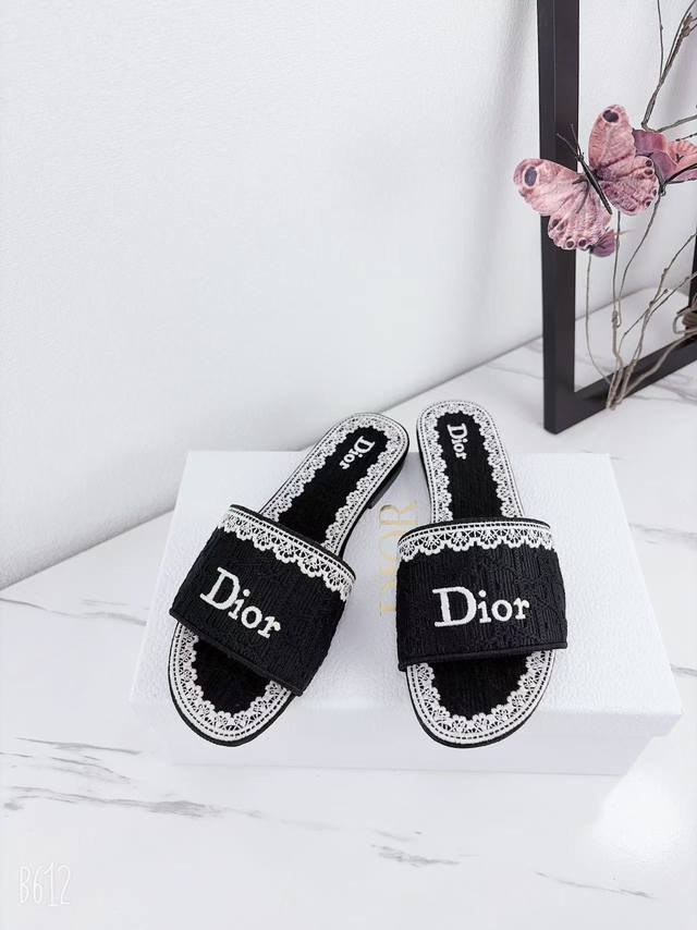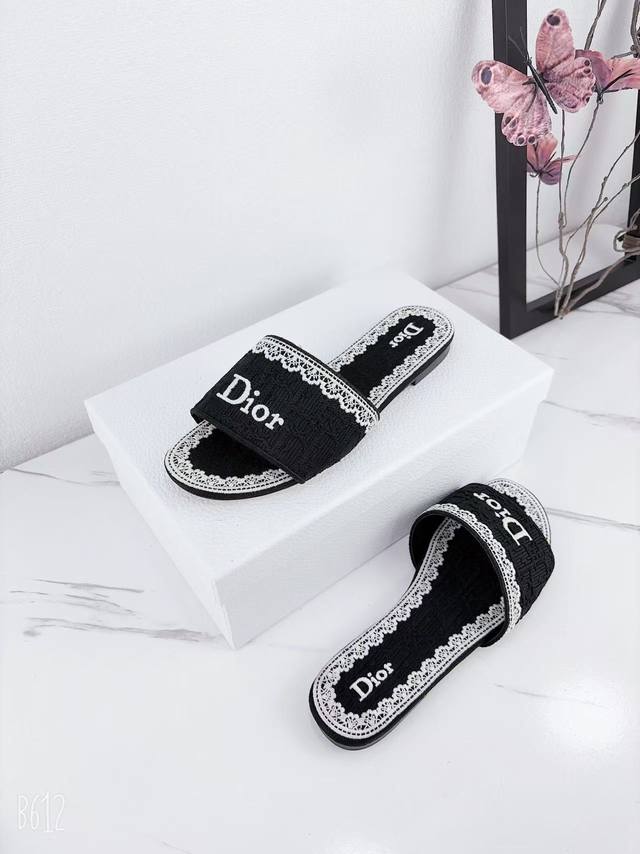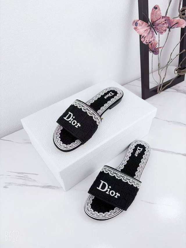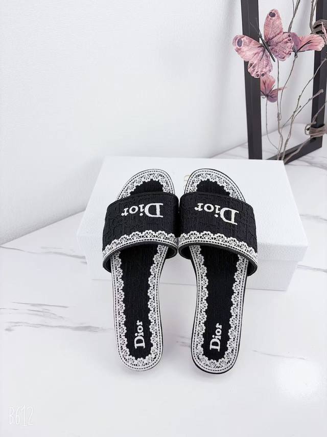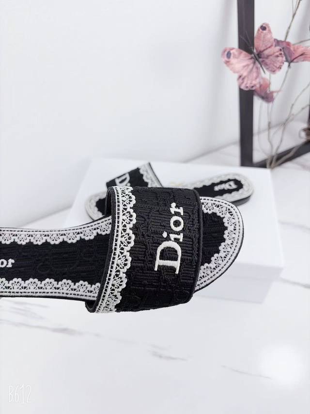 Factory price Ddd Dior 2025 Spring/Summer New Dway Flat One-Shot Slippers Jelly Color Women's Shoes Cd Letter Logo 3D Embroidery Round Toe Open Toe Color Block Sandals Ddd Material: Imported raffia embroidered high-temperature water-soluble cotton technical fabric for the upper + water-dyed sheepskin lining + Italian thickened genuine leather outsole Ddd Size: 34-42 34, 40, 41, 42. Custom orders are non-refundable and non-exchangeable DDD