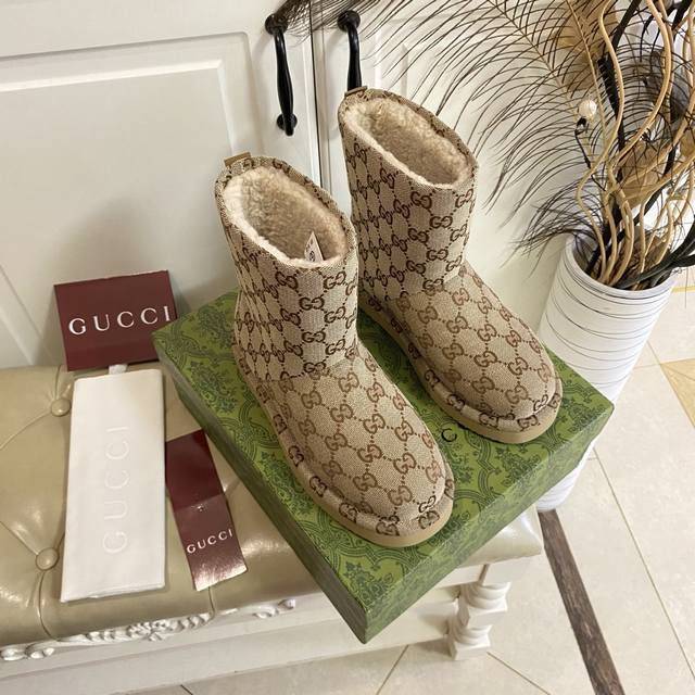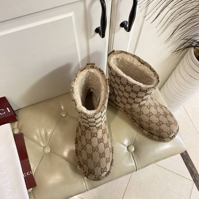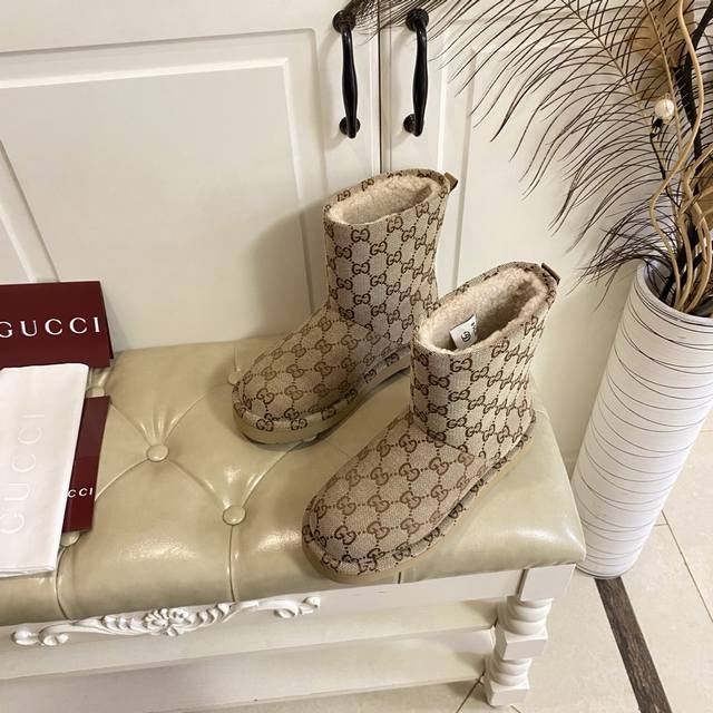 Factory Price p, Gucci New Style Fur Boots, Jacquard Fabric Upper, Wool Lining, Lightweight Foamed Rubber Sole, Sizes 36-42 DDD