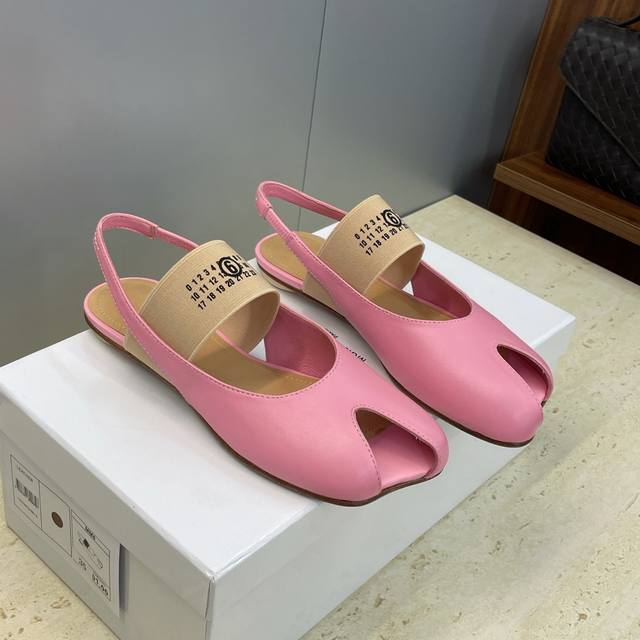 Factory price p Ddd Maison Margiela 2026 Early Spring New Flat Jelly Color Women's Shoes Mm6 Letter Logo Color Block Chunky Heel Peep Toe Open Back Sandals Ddd Material: Imported calfskin upper + water-dyed cowhide lining + Italian genuine leather outsole Ddd Heel height: 6.5Cm Ddd Size: 35-41 40.41 Custom orders are non-refundable Ddd