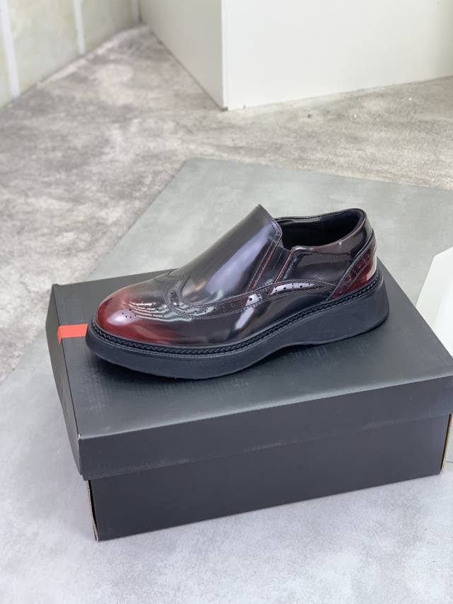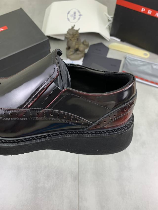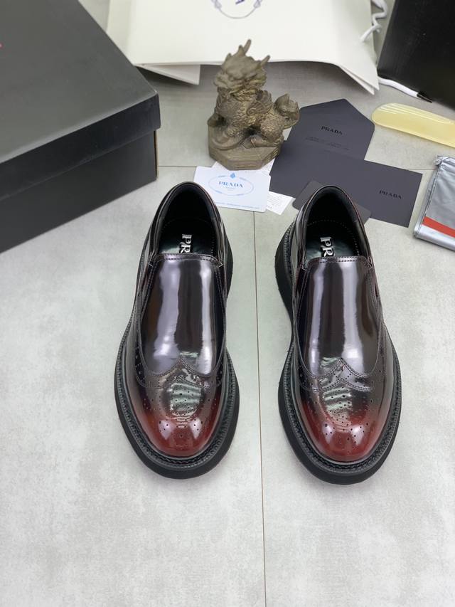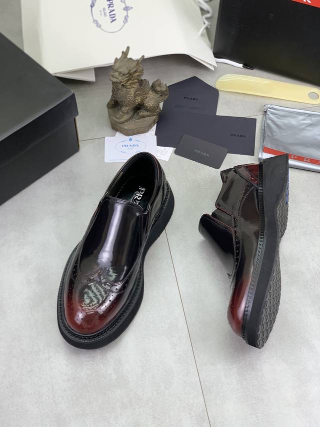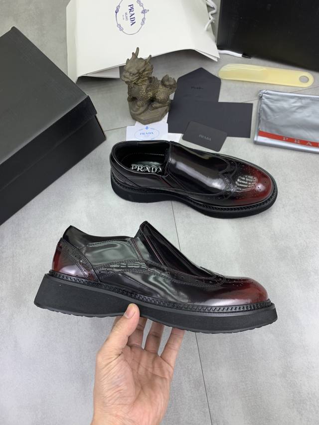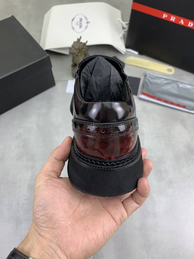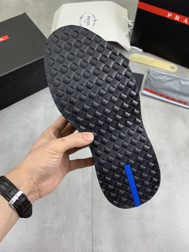 Factory price, real price, Prada top-tier version, new Prada casual leather shoes, original purchase, developed and manufactured. Prada men's classic series, technological breathable fabric paired with cowhide, casual sports shoes, casual footwear, sports dad shoes, combining high-tech breathable materials and cowhide, side exclusive Prada button decoration, outsole full of Prada italic design and vibrant colors to show vitality, continuing the brand's design inspiration. Lightly stroll in the city, feel unrestrained comfort. Beautiful packaging included. Material: Original custom calfskin with breathable material. Lining: Cowhide lining, cowhide insole. Outsole: Open mold TPU foam material. Sole thickness: 3.5cm. Size: Men's 38-45, black and burgundy colors available.