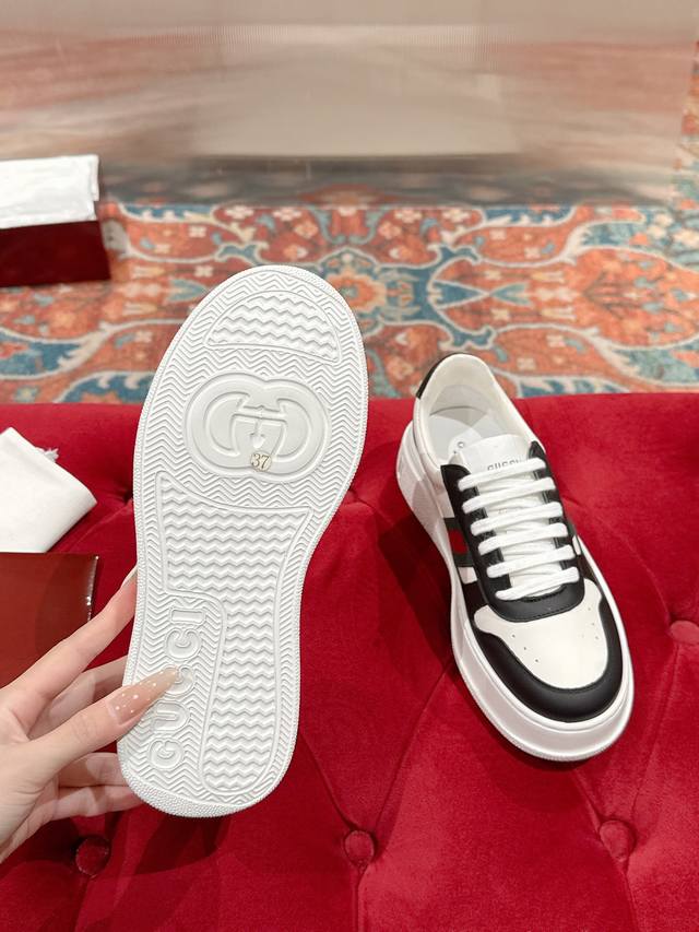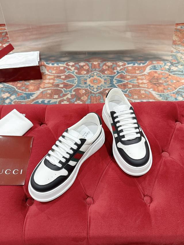 Female p Male p Ddd Gucci * Platform Couple Sneakers Ddd These sneakers feature a platform structure, cleverly utilizing silhouette design , color scheme, and material elements. Classic elements are used to interpret the brand's design philosophy of blending sports and leisure. The platform design gives the sneakers a retro feel. Most importantly, the shoes are very lightweight and the sole is very soft, making them very comfortable to wear all year round. They are especially stylish for autumn and winter. Ddd Material: Original custom cowhide Ddd Outsole: Rubber outsole Ddd Heel height: Approximately 5cm Ddd Size: Women's 35-40, Men's 39-44, Women's 40, Men's 45 Custom orders are non-refundable DDD