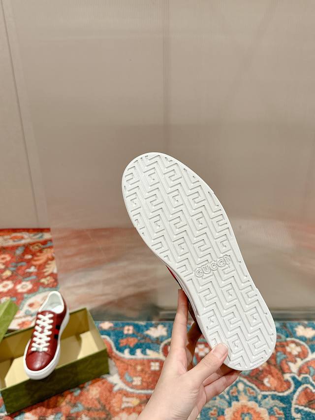 Female p Male p Ddd Gucci's latest Ace series bee white sneakers, couple's casual sports shoes Ddd Original purchase and development. Since its inception, Gucci's Ace series of sneakers has continued the brand's narrative, with craftsmanship creating its signature item. The new series features a distinctive low-top design, paired with unique details, reinterpreting the sneaker silhouette. The lace-up is adorned with an "Ace" metal tag, and the thickened construction exquisitely shapes the shoe. Gucci's classic red and green striped webbing adds even more charm to the design. Ddd Material: Original imported top-grain cowhide Ddd Lining: Original custom soft sheepskin Ddd Sole thickness: 3cm Ddd Size: Women's 35-40 Men's 39-44 Women's 40 Men's 45 Customized, no returns or exchanges Ddd