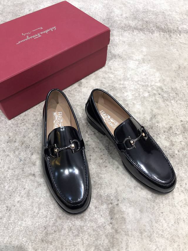 Ferragamo high-end men's casual leather shoes, imported cowhide upper, water-dyed cowhide lining, genuine leather outsole, impeccable details, standard sizes 39-44, 38.45. Custom orders are non-refundable and non-exchangeable. In stock.