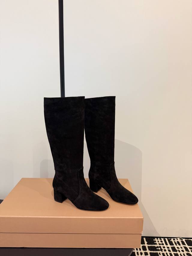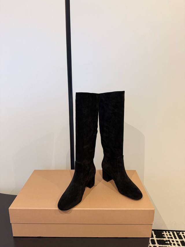 Gianvito Rossi25 Autumn/Winter Hot Chunky Heel Boots Lining: Custom Imported Suede Color: Dark Brown, Apricot, Caramel Black Heel Height: Flat 6cm/8cm Sizes: 35-39