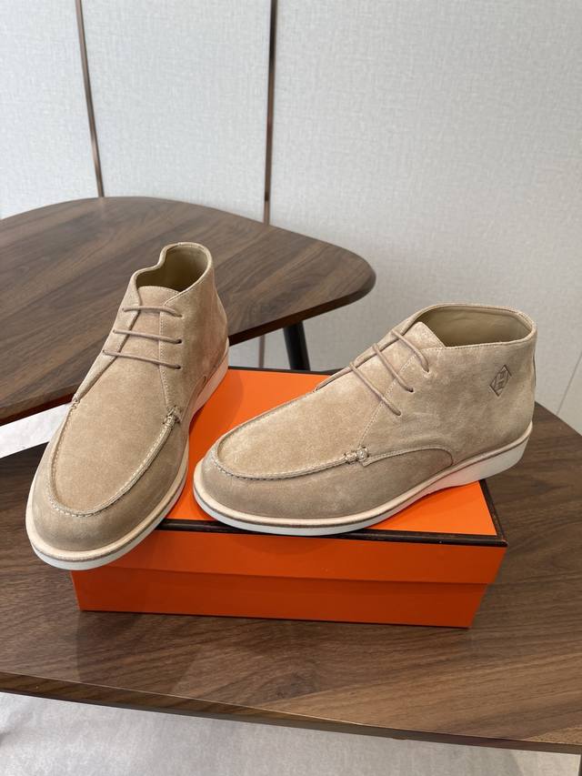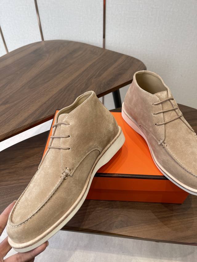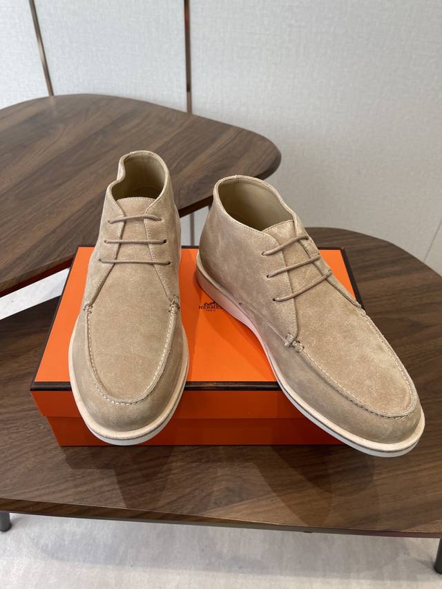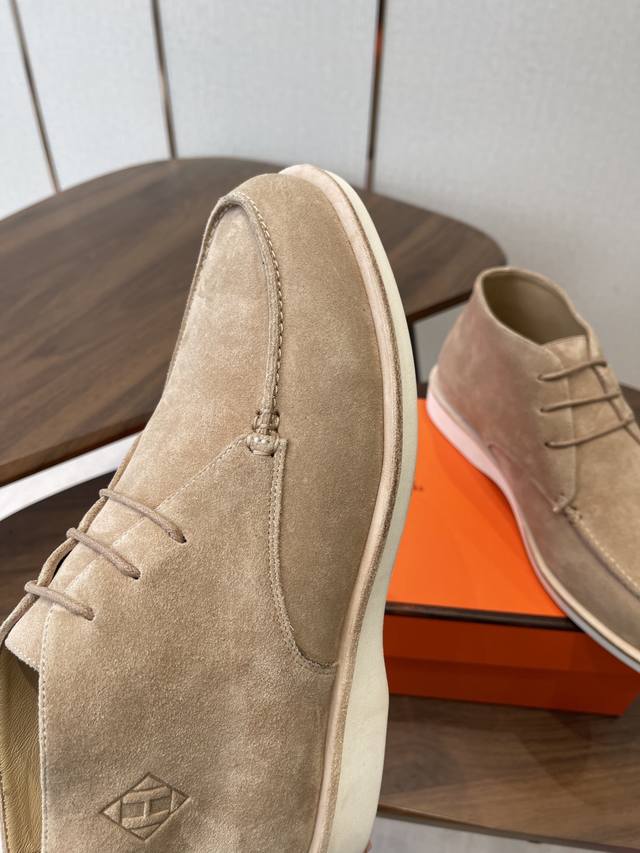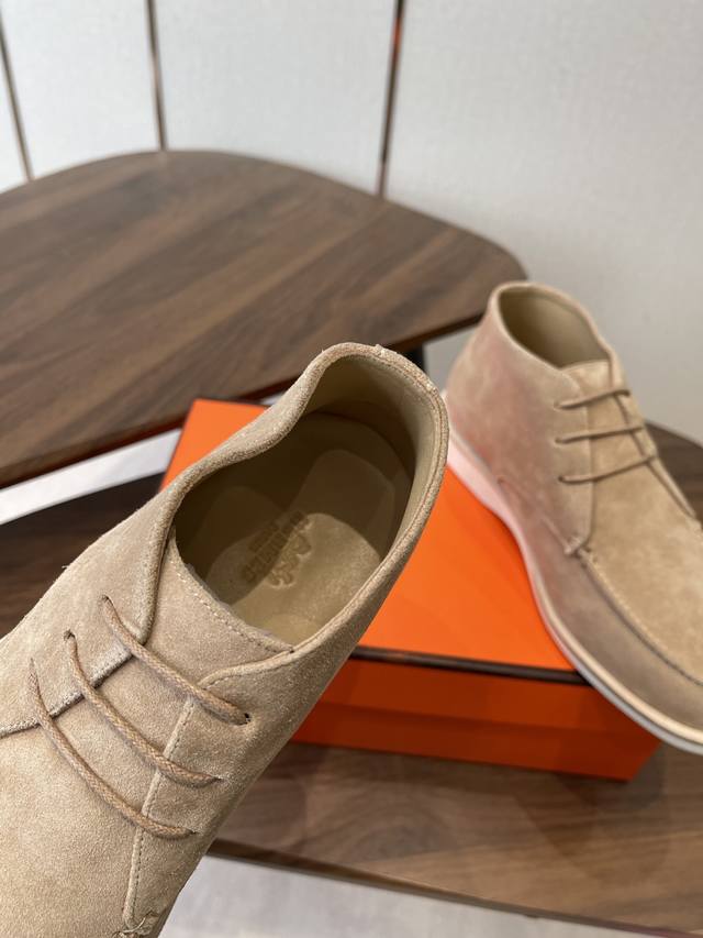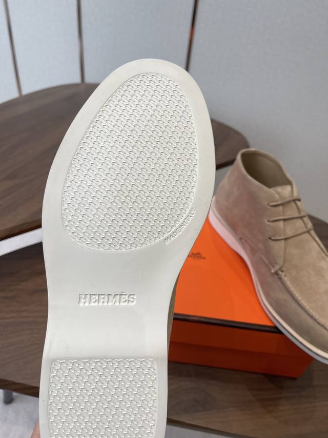 Hermes 25Ss Autumn/Winter New Loafers + British Retro Design, Classic and Timeless! Original molded last, perfect 1:1 shape, imported high-end materials present exquisite texture! Material: Cow suede; Lining: Mixed sheepskin lining; Outsole : Genuine leather welt + original TPU; Sole thickness: 3cm; Sizes: 39-45, 46-47 (Custom made).