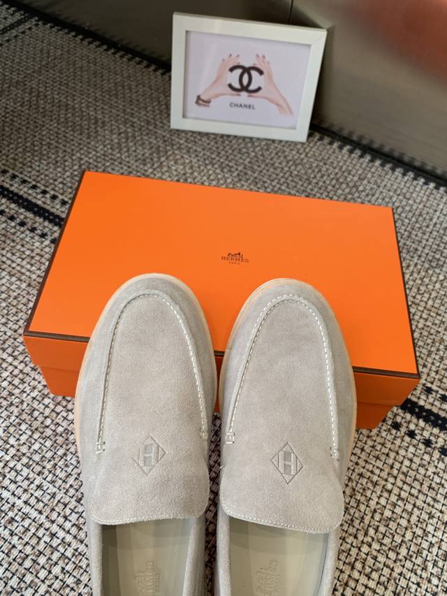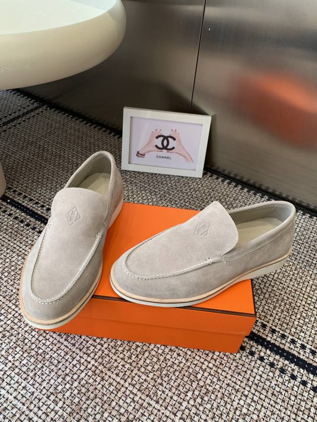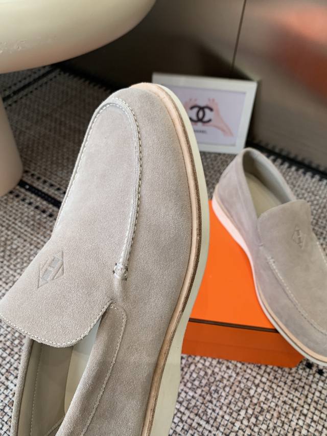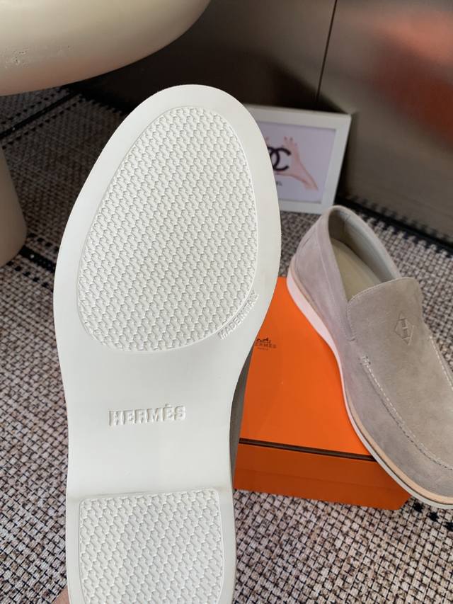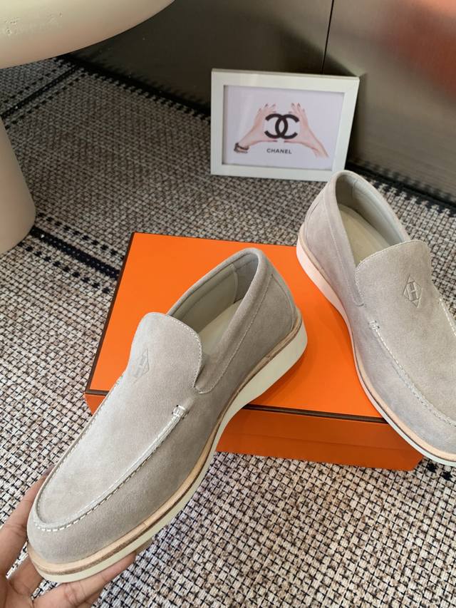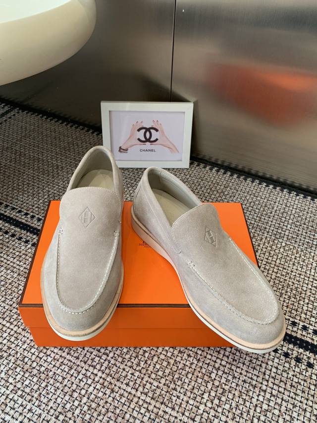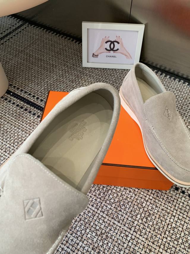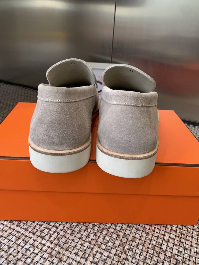 Hermes 25Ss New Men's Loafers Slip-on Julian Series calfskin and suede goatskin slip-on sneakers. Features the iconic "H" detailing. Simple and streamlined design for a stylish urban look. Comfortable and versatile, a classic Hermes timeless style. Original suede upper, imported soft goatskin lining, original molded sole. Sizes: Men's 39-46, 45.46 custom-made.