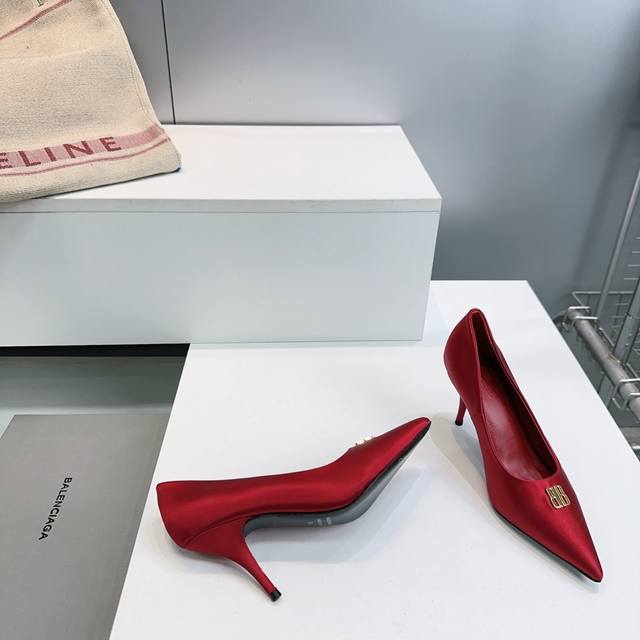 High-quality factory release! Balenciaga Spring/Summer 2026 new Bb buckle pointed toe high heels with metal buckle embellishments, open-back sandals/single shoes series. Original purchase and development! Classic Balenciaga's unique fashion charm, super stylish on the feet!! Perfect for autumn and winter outfits. Upper made of imported genuine silk satin, insole made of sheepskin, genuine hardware developed from authentic products, Italian imported genuine leather outsole! Heel height: 8.5cm. Sizes: 35-42, 40, 41, 42. Custom orders are non-refundable and non-exchangeable. Comes with original packaging.