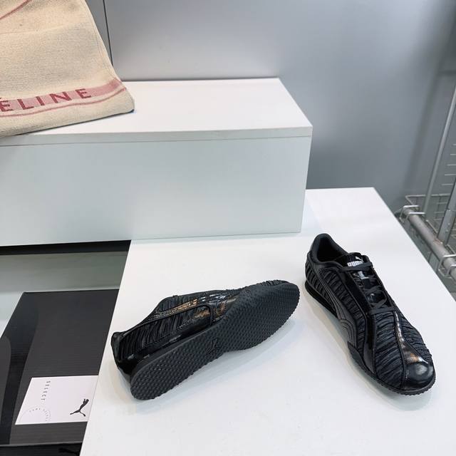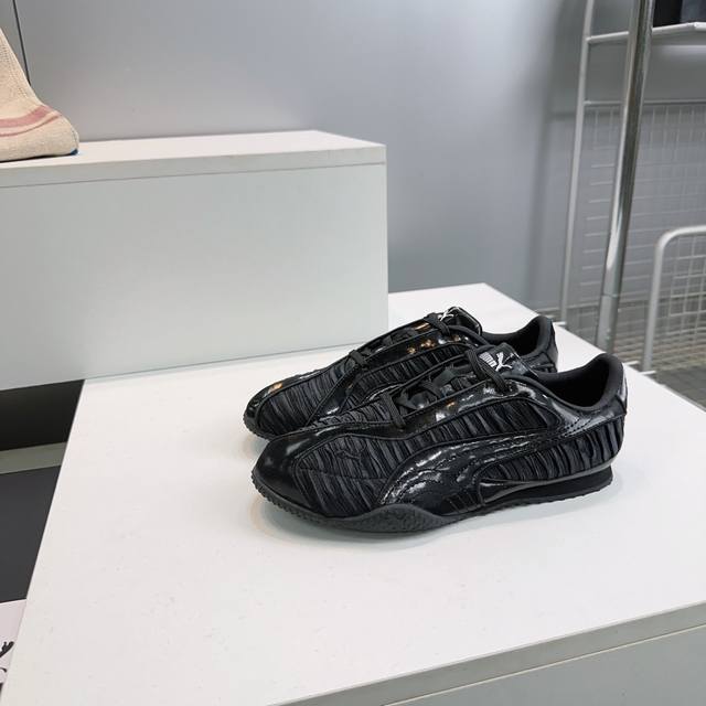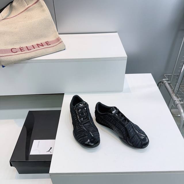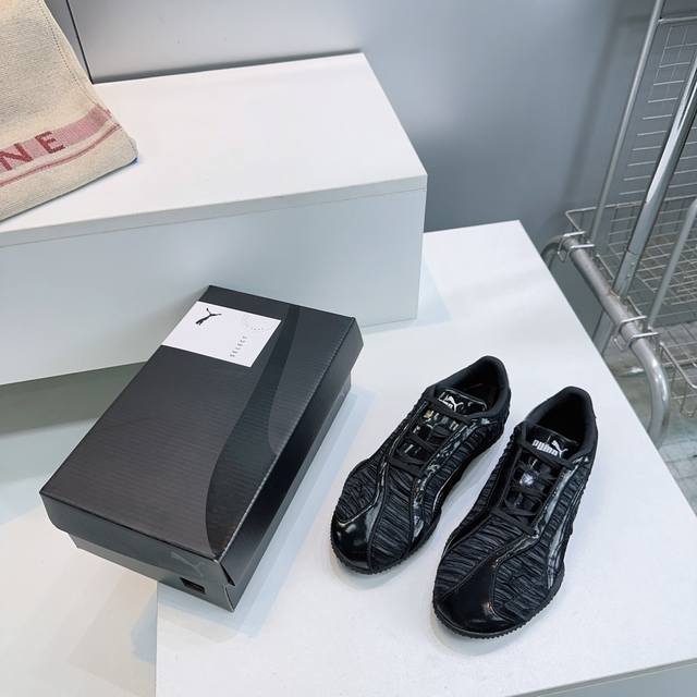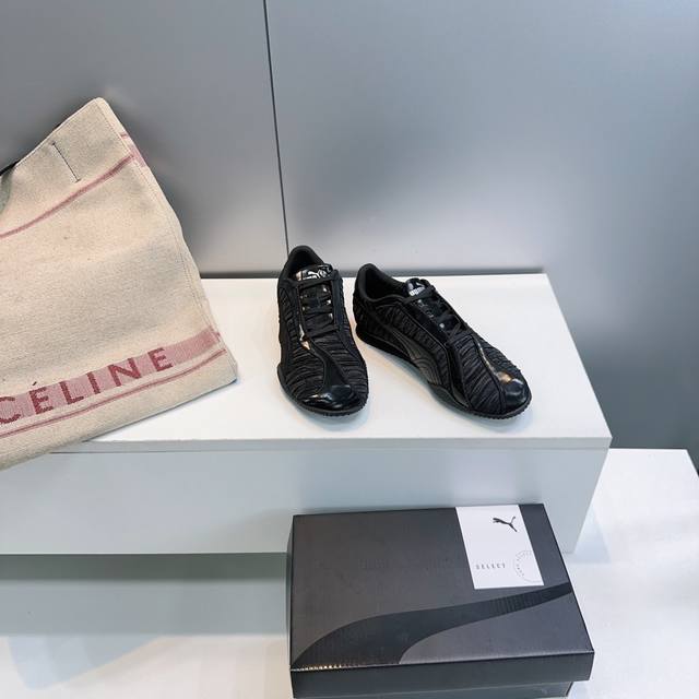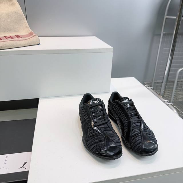 High-quality factory! Top-quality Puma 26 retro pleated design sporty casual white sneakers! Following the retro soccer shoe design route, this shoe combines classic athletic shoe style with modern texture, offering both a retro trendy feel and everyday wearability. The upper uses textured embossed material with glossy splicing, creating a visually layered and high-quality look; both black and white are simple and versatile. The low-top design and streamlined body are flattering, maintaining the comfort of athletic shoes without appearing bulky, suitable for everyday casual wear and light athletic styles. The flat sole and soft outsole provide comfortable walking; the lightweight design combines the functionality of athletic shoes with the casual feel of casual shoes. Features include imported pearl calfskin upper, original fabric lining, mesh lining, sheepskin insole, original molded rubber outsole. Sizes: 35-40 (size 40 is non-refundable). Comes with original packaging.