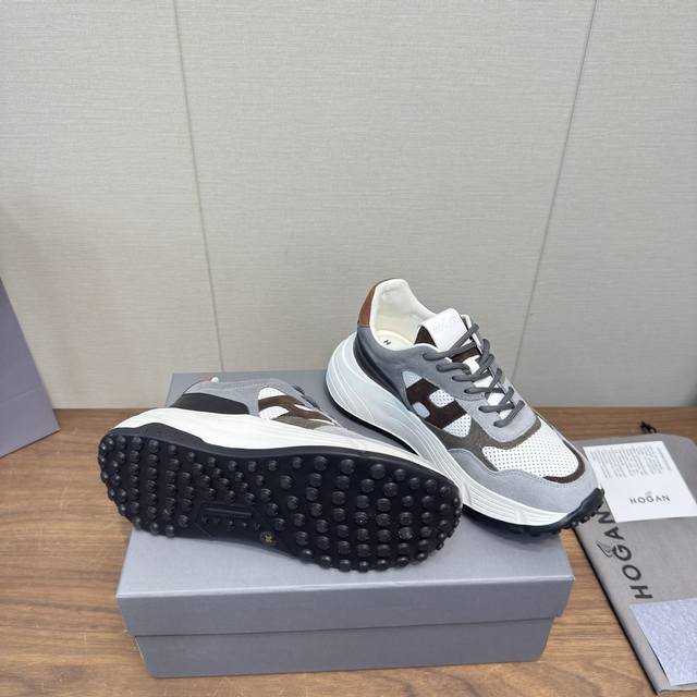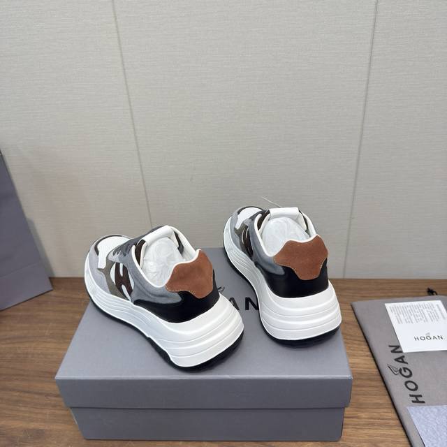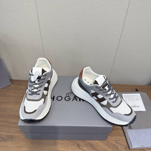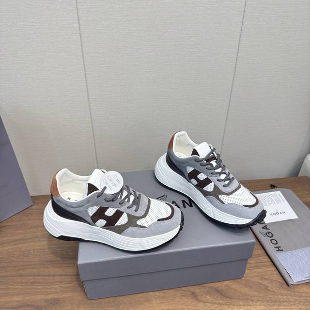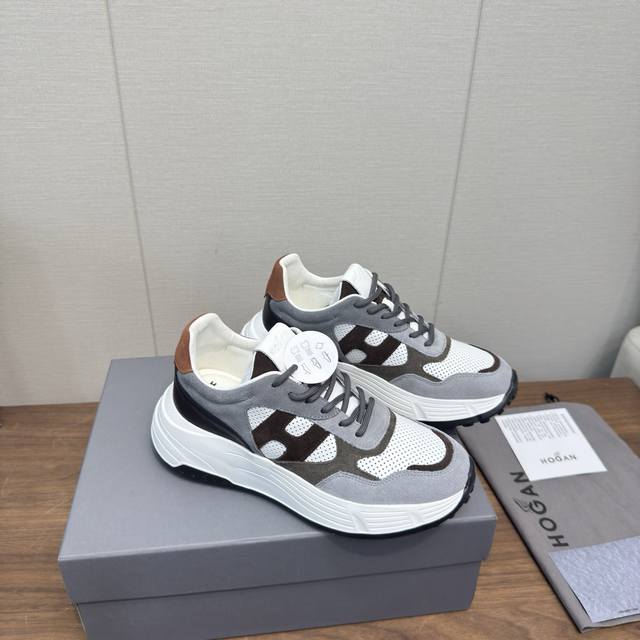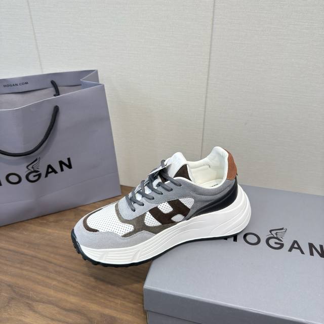 Hogan 2025 Casual Sports Shoes, Thick-Soled High-End Lace-Up Sneakers, High-Version Couple Style. This new Interactive Cube series, endorsed by Wu Lei, features a futuristic, luxurious design, the same style as in department stores. Made with imported Italian flocked suede cowhide and breathable mesh fabric, it boasts a streamlined upper, a textured H-shaped design on the side, a lightweight memory foam insole for added height, slip resistance, and durability. The classic outsole provides exceptional comfort, making it a must-have for trendy men. Sole thickness: approx. 5.5cm. Sizes: 35-44, 45.46 (custom sizes available).
