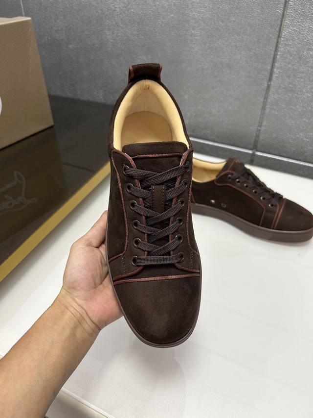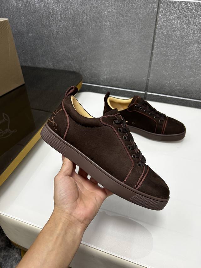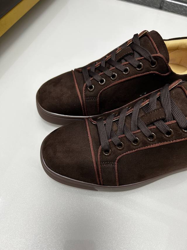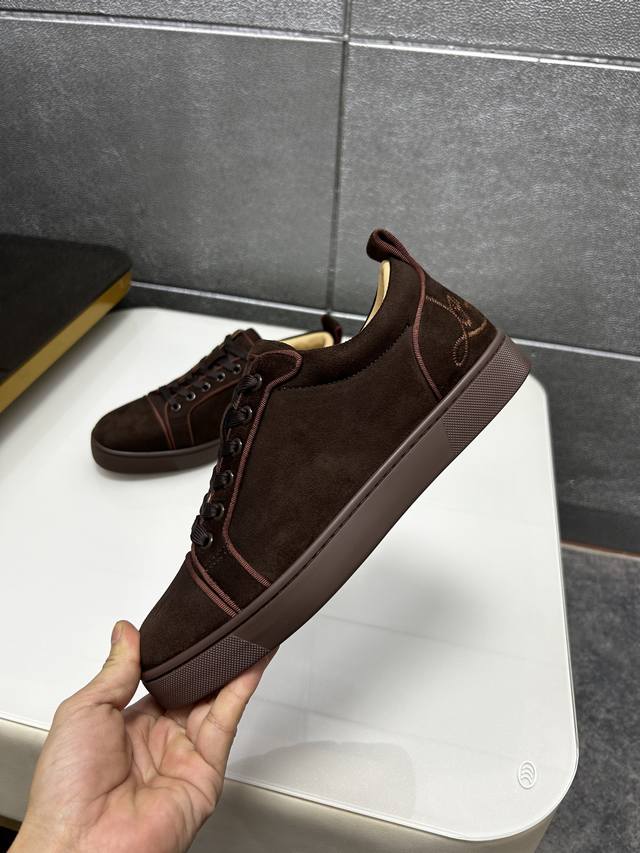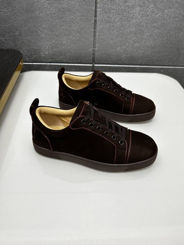 In stock, supports returns and exchanges, factory price. Christian Louboutin Cl red-soled shoes, boutique series, exclusive hot release of casual sneakers for couples, latex insole, finished outsole, stitching, women's sizes 35-40, men's sizes 38-46, top-quality version with global supply: original imported genuine leather upper, top-quality original leather lining, original mold TPU outsole, original 1:1 detail processing, original shoe last.