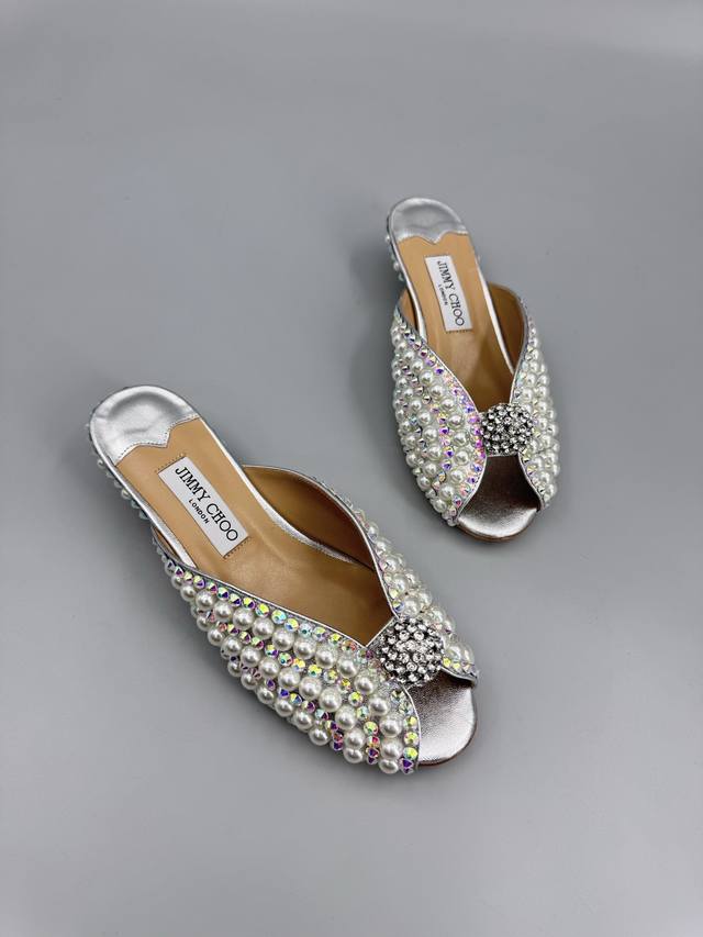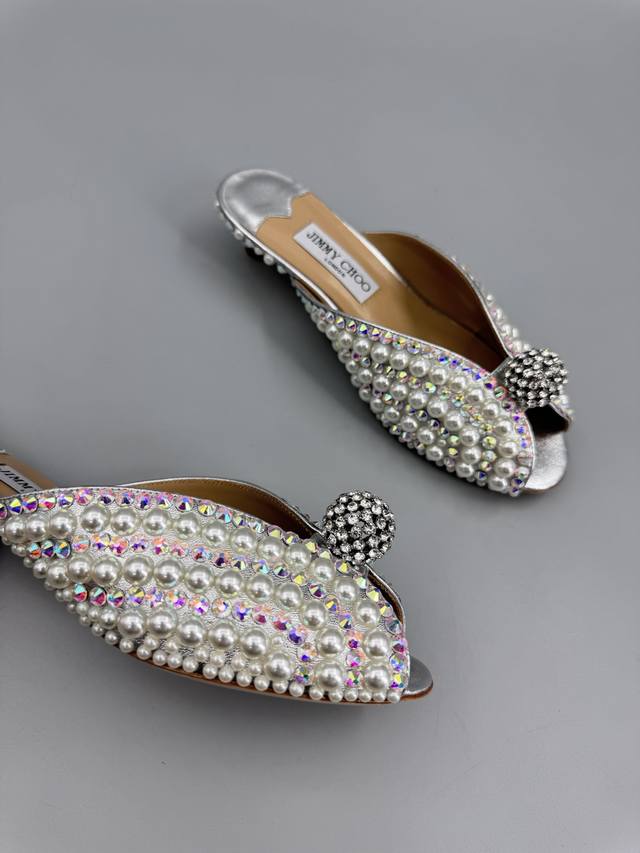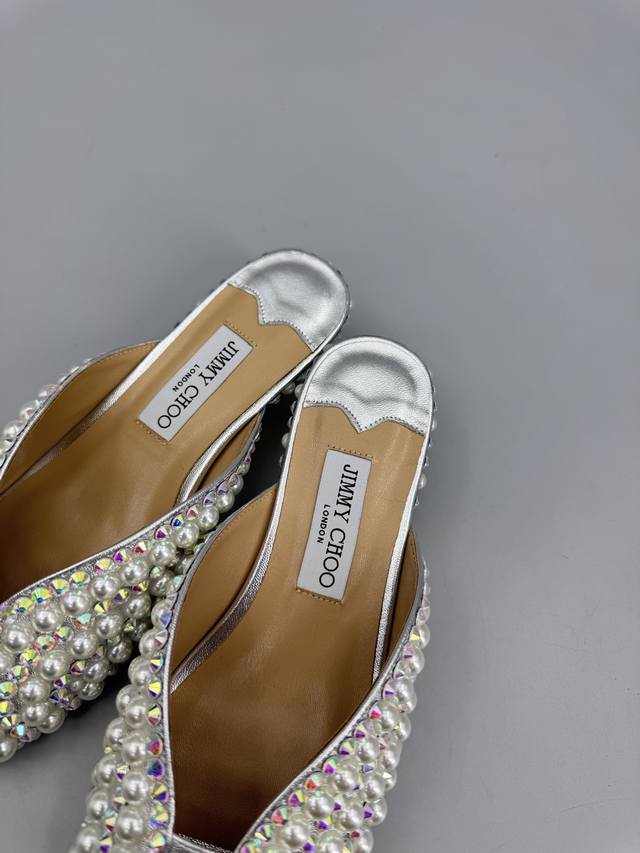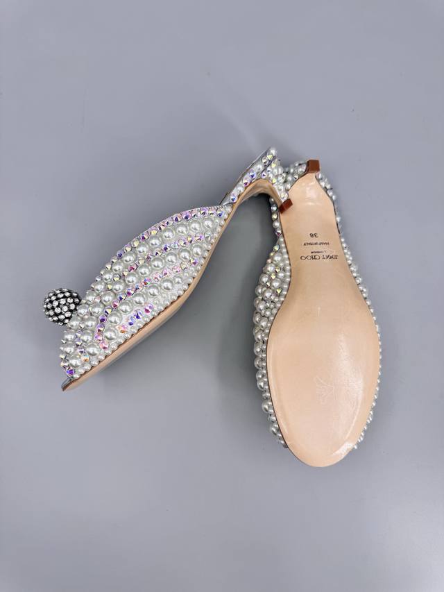 Jimmy Choo Handmade Pearl & Rhinestone Collection. This collection is designed for exceptional, free-spirited women, creating a unique overall effect. Jimmy Choo designs products that inspire women to move forward with confidence and showcase their charm. 1. Fabric: Imported lambskin, handmade with rhinestones and pearls. 2. Lining: Imported Italian lambskin, super soft and delicate. 3. Outsole: Imported Italian original genuine leather outsole, 6.5cm heel height. 4. Sizes: 35-39, 34, 40, 41, 42. Custom sizes available.